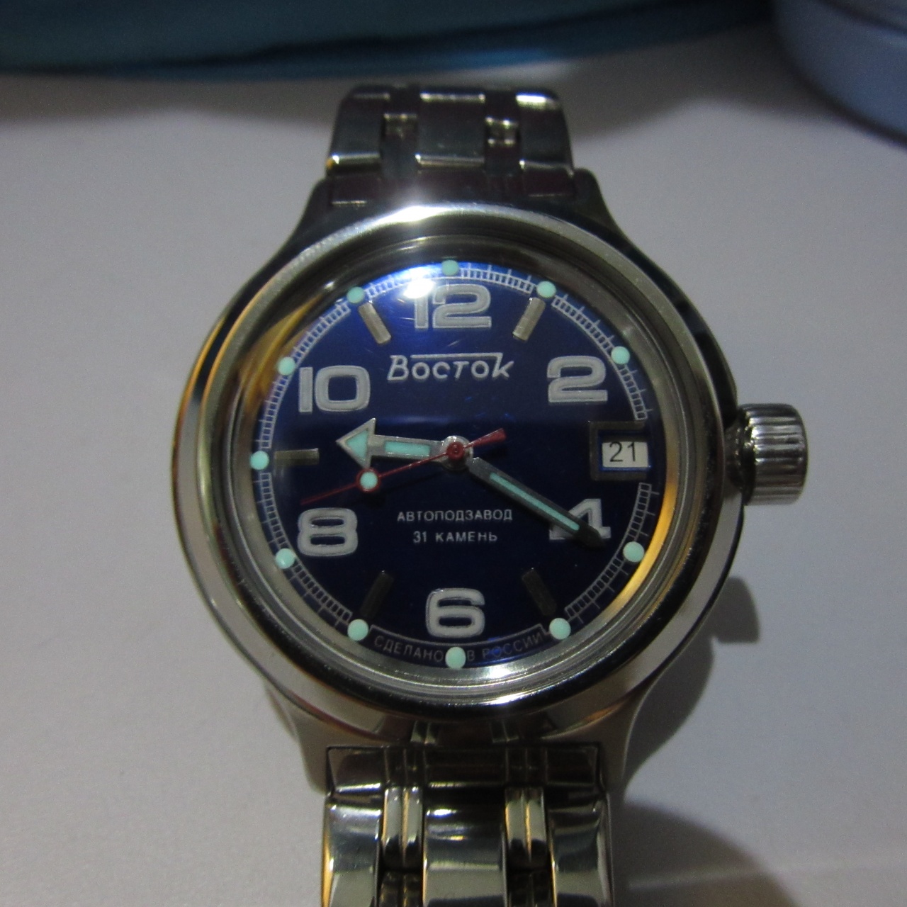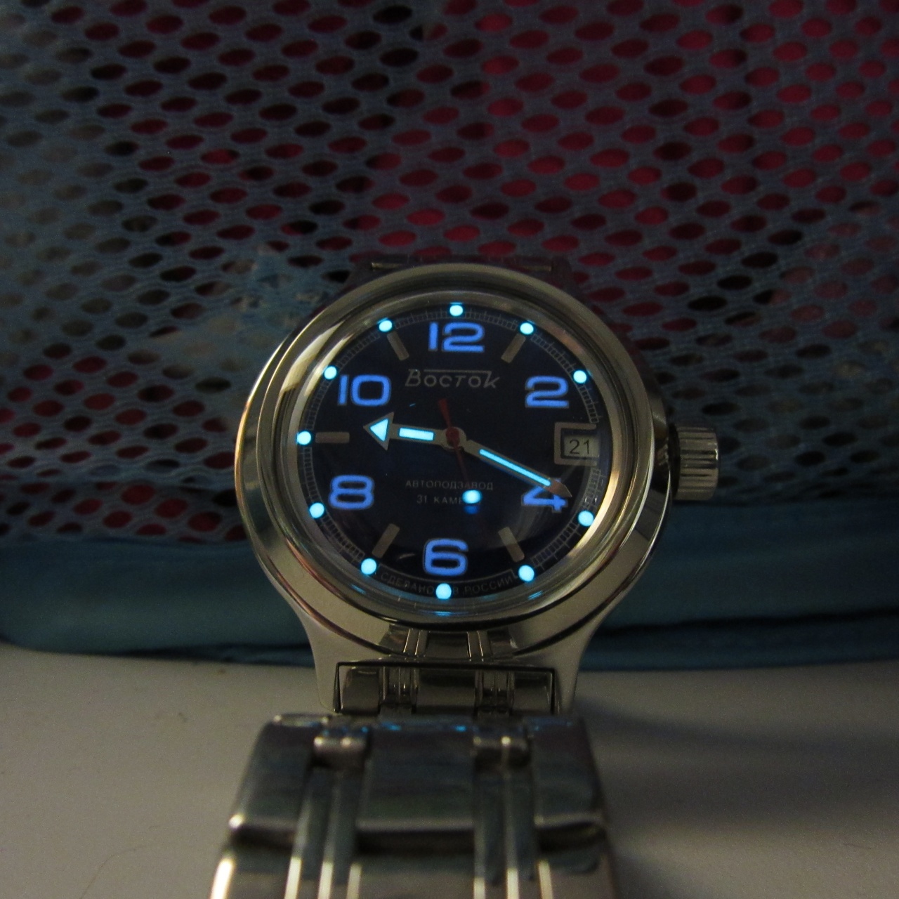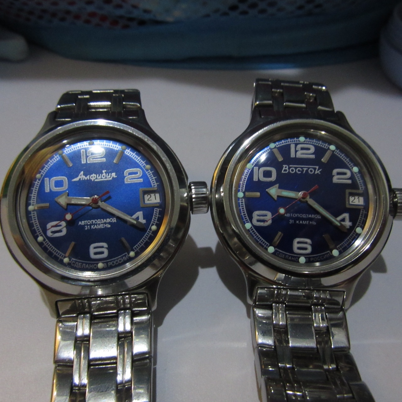 Не Амфибии конечно, но в той же стилистике. Люм от Stronga, отменное качество работы и читается всю ночь! "Родной" люм на циферблате был откровенно плох, на стрелках был лучше, но до нового люма ему было далековато. Прошу прощение за качество фото, особенно в темноте, не спец я, в действительности светит ярче и выглядит лучше...