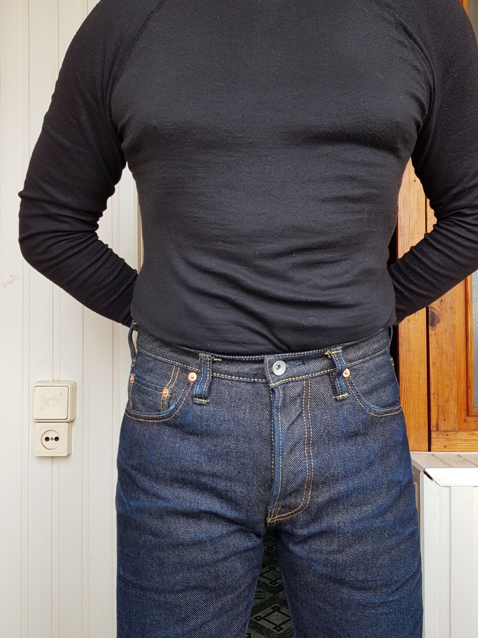 Думаю и от 49 (как значится на патче, там в плане фасона мало что). А так по мне годный вариант для тех кому репро-фит неинтересен, равно как и не нужны детали модели Okinawa, но нравится сам деним в сочетании с современной посадкой. |