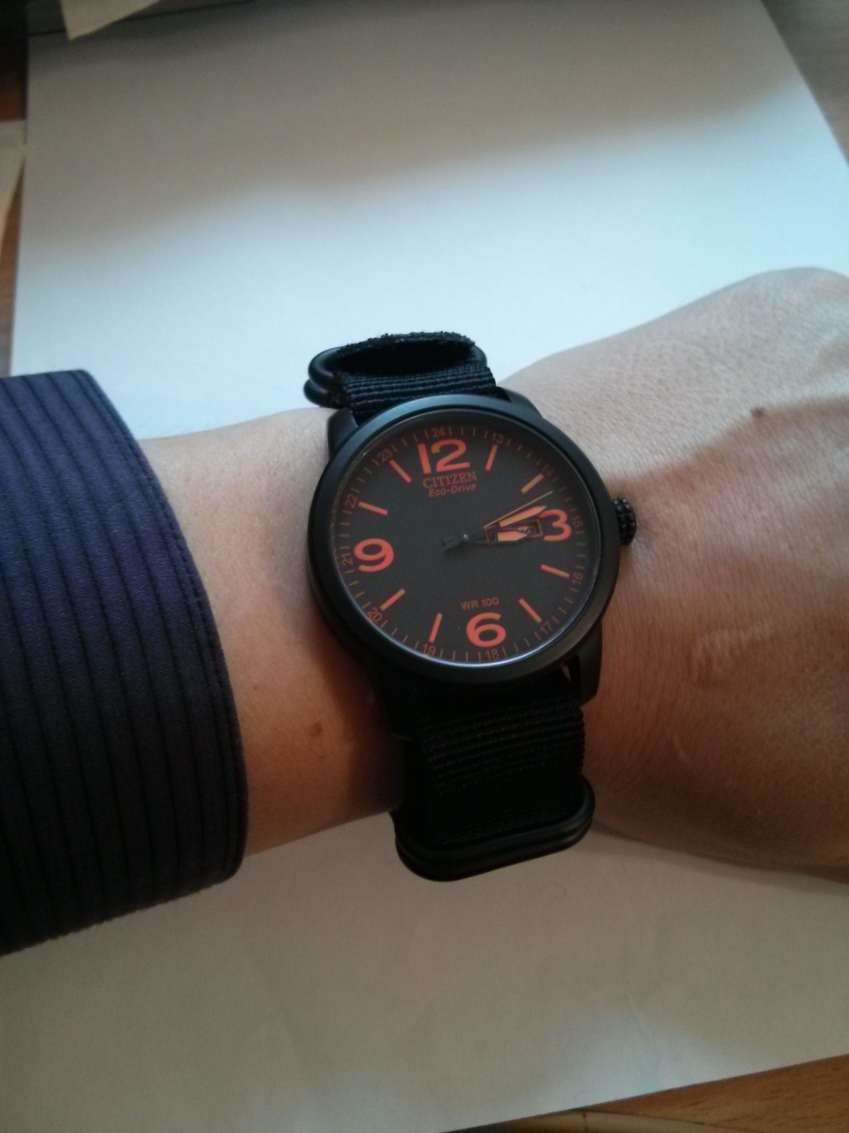 Да простят меня братья Seiko-носы, потому пока коплю на Astron (а это долгая песня), решил побаловать себя новыми часами. Последними были Orient с автоподзаводом, но как я прочитал где то, автоподзавод как собака выходной или отпуск не важно-надо выгуливать. Надоело что в пятницу/субботу снимешь с руки а в понедельник выставляй время и дату по новому, либо в воскресение одевай и тряси. И не смотря на то, что являюсь любителем механики решил все таки присмотреть что то новое из кварца. Естественно, как и у любого человека кварцевые часы у меня были но поразительная точность улетучивалась вместе с родной батарейкой. 2-3 года все хорошо, а потом бац и точность не та и порой начинают чудить вплоть до остановки. Грешу на батарейки. Но опыт опытом и потому от обычного кварца решил перейти к кварцу в котором не нужно лезть и меня батарею. Искал самую дешевую модель Драйва. Потому как все равно маячат Астроны. По картинкам понравились CITIZEN - AW1184-13E. В Инете прочитал, что новая модель 2013г. Выбор сделан по форуму нашел человека с ником Listok (благодарности были озвучены в другой теме) и после недолгих переговоров часы были отправлены. Интересная модель, в меру тяжелые. Точность на 1 сек за 3 дня ушли. Теперь в жизни новое удобств,о нет необходимости по понедельникам вначале трясти часами для завода, а потом выставлять время. Ну и парочка фоток.