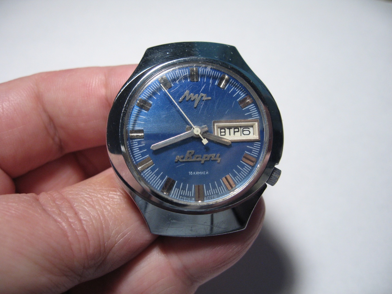 http://f23.ifotki.info/org/bcacdd8fa...5314418918.jpghttp://f23.ifotki.info/org/eaa61860f...5314418918.jpghttp://f23.ifotki.info/org/1fefa6951...5314418918.jpg ------- ДОБАВЛЕНО ЧЕРЕЗ 14 МИН -------- Луч 3054 Что мы знаем? В 1976г. был намечен выпуск кварцевых балансовых часов Луч 3055, но.....по некоторым причинам этого не произошло, но выпускать то надо, план! И свет увидел калибр 3054, упрощенная версия 3055, без кварца.... Вместе с тем это единственный калибр СССР без кварцевой стабилизации и частотой 28800 Всего в 1976-79 годах было выпущено всего пара тысяч штук. В 1980 г. калибр окончательно сняли с производства В связи с плохой стабилизацией баланса калибры устанавливались в основном в настольные часы, но существовали и наручные варианты в корпусе ЧН 801,выпущенные в 1976г. http://f23.ifotki.info/org/f73051da0...5314419844.jpg Луч 3055 Описывать историю смысла нет,но....... При желании на сегодня возможно подсчитать примерное количество выпущенных 3055.. 1977 - 2350шт. 1978 -40 000 1979 -80 000 1980- 100 000 1981- 110 000 1982- 120 000 1983- 120 000 1984- 80 000 Итого получаем около 660 000....не так уж и мало, но в масштабах СССР - ничто. Часы выпускались в четырех типах корпусов ЧН201, ЧН204, ЧН212, ЧН217 В 1979г. была произведена доработка герметичности корпуса ЧН204. ЧН201 и ЧН217 выпускались малыми партиями....... http://f23.ifotki.info/org/ff0f49871...5314420236.jpg |