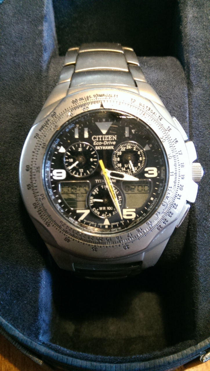 Хронограф Citizen Promaster Titanium TA GN-4-S, покупались в 2000 году, ходят исправно, ни разу не обслуживал-только менял батарею, купались в море, в них работал не раз и т. п. Поначалу не слезали с руки, сейчас больше Джи-шоки эксплуатирую.