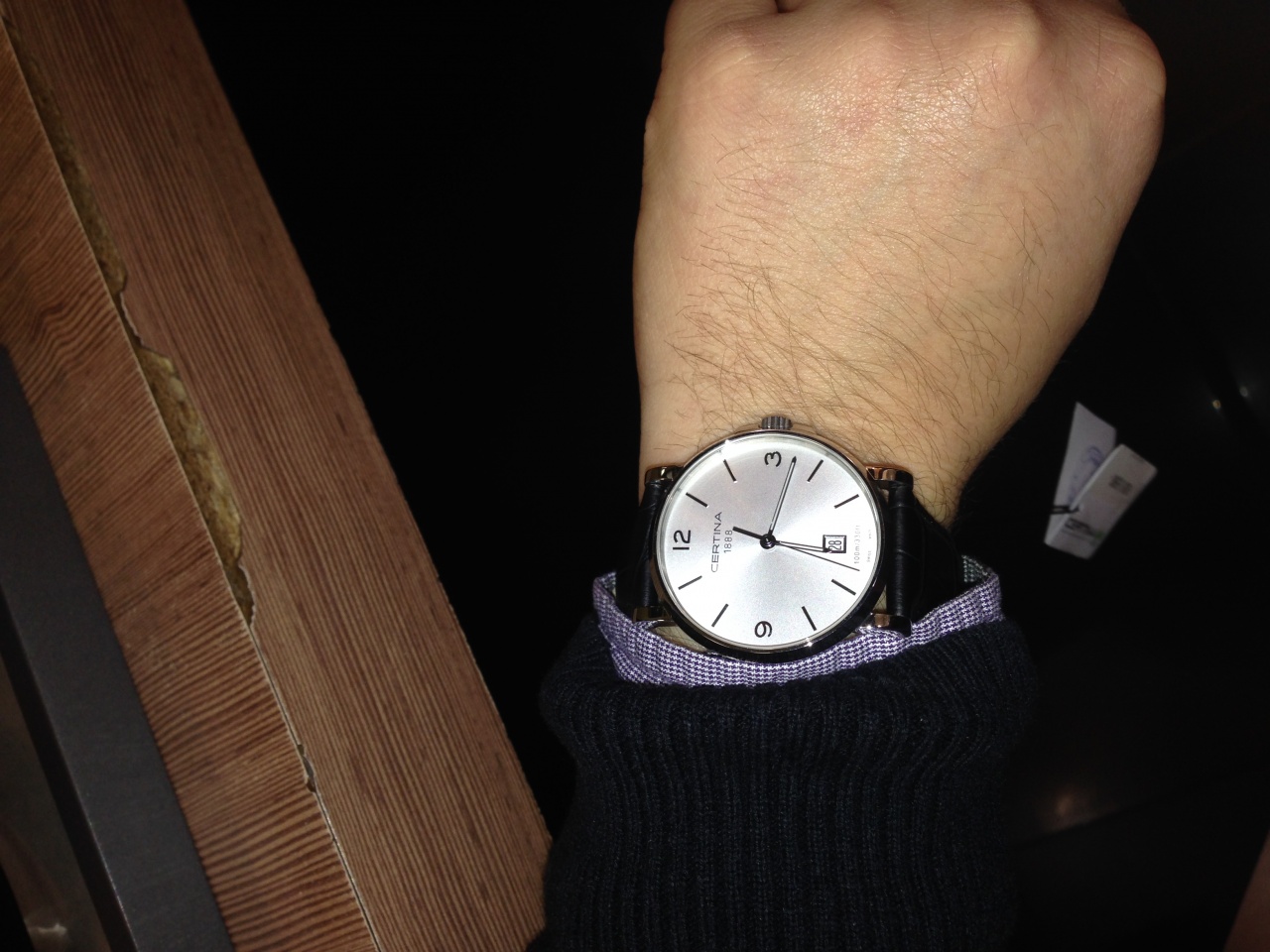 У Caimano не хватает одного деления на ремешке и он немного болтается на руке. Придется искать мастера, чтобы сделать еще отверстие и снова за это заплатить, что уменьшает разницу в цене между часами. Сам ремешок Caimano гораздо мягче и лучше, чем у DS-4, но чтобы одеть и снять часы нужно до упора его оттягивать, что уменьшает срок жизни ремешка, я опасаюсь, что он просто оторвется на сгибе. При этом сами Caimano смотрятся чуть более игрушечно и миниатюрно, хотя вполне изящно и дешевле на 5 тыс. Зато у DS-4 BIG SIZE есть минутные деления, люминисцентное покрытие на всех делениях, индикатор разряда батарейки, да и сами часы выглядят серьезнее и солиднее даже с расстояния пары метров. Ремешок DS-4 BIG SIZE чуть дубовый и жесткий, но с удобным быстрым замковым креплением "бабочкой", понятно, что прослужит дольше и сидит как влитой. Единственный момент, к телу с внутренней стороны ремешка прикасается металл застежки и я еще не знаю, не будет ли он натирать руку.