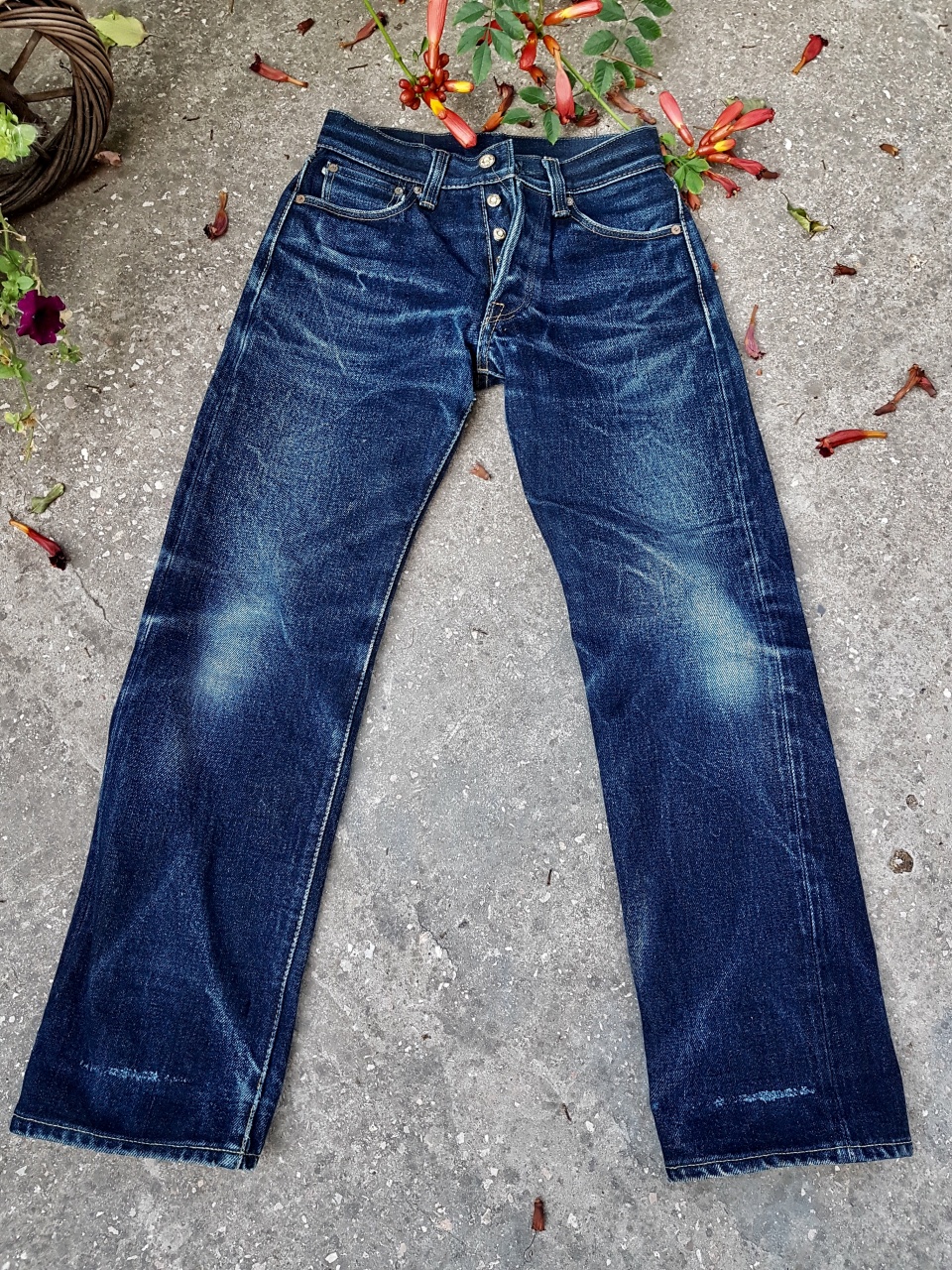 Модель 2009-2010 года,самая слимистая и самая темно-прокрашеная модель Черепа, дьявольский выпуск был одноразовый и больше не повторялся! Посмотрите как сделаны задние карманы,шлевки,ну и изюминка,черный таб! Фит самый слимистый -посадка низкая, рок-н-рольная:cool:, задние карманы низкопосаженые.Плотность стандартная Череповская-14.5 унций,хлопок -микс американского , аризонского с калифорнийским, деним мягкий но не ватный, фейд намечается искрометный! Очень нравятся штаны,ни сайзап ни сайздаун не нужен,все четко по размеру,как задумано дизайнером :p |