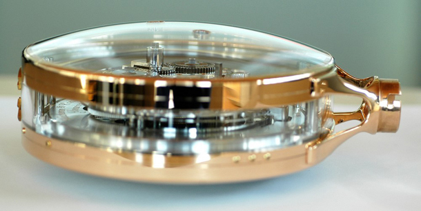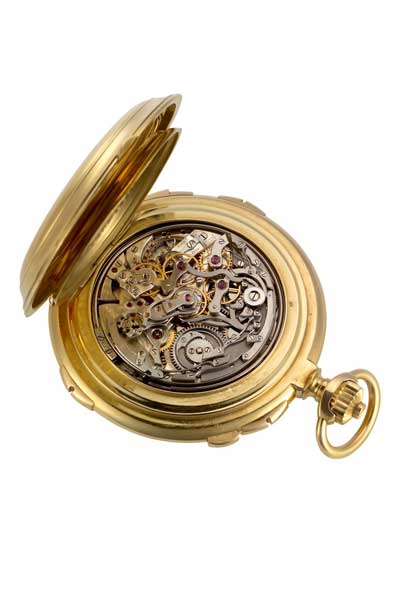 Раздел II - Наручные часы В обратном порядке рассмотрим пятерку самых сложных часов в этой категории от VC Одними из самых первых наручных часов Vacheron Constantin с большим количеством усложнений был референс 3620 1936 года выпуска. Сделанные под заказ для клиента из Испании, эти уникальные часы продолговатой формы включают в себя день недели, ретроградную дату и минутный репетир. Цифры на циферблате нанесены синим цветом в отличие от привычного черного. Эти наручные часы считаются самыми первыми, в которых использовалась ретроградная шкала (эта тенденция получила свое широкое распространение в часовой промышленности шестьдесят лет спустя). Вложение 134372 До возрождения механических часов в конце 80-х Vacheron Constantin не создавал слишком сложных наручных часов, кроме одного образца, который на то время был великолепным и необыкновенно большим – референс 4293 с диаметром 38 мм. Этот минутный репетир с тройной датой и фазой луны в корпусе из розового золота был выпущен в 1943 году и продан в 1957 году. Вложение 134375 5) референс 30020 (референс 30040) – 6 усложнений – 1992 (2006): Минутный репетир День недели Дата Месяц Вечный календарь Фаза луны Вложение 134376 Конец 80-х годов принес возрождение механических часов после кварцевого кризиса, который сильно омрачил швейцарскую часовую промышленность. Мануфактуры возрождались и Vacheron Constantin решил вернуть свои сильные позиции, добавив одни из самых сложных часов в свою коллекцию: минутный репетир. Вложение 134377 В 1998/1999 годах марка начала работу над колоссальным проектом, предложенным двумя людьми: Марселем Гоем, техническим директором, и Джеральдом Дюбуа, изготовителем механизмов. Целью было создание мифического механизма, который бы соответствовал экстра плоскому механизму репетира, который бренд использовал в 40-х годах. Вложение 134378 Важно было понять формулировку задания. Сложность заключалась в отсутствии оригинальных эскизов Калибра. Из-за кварцевого кризиса остро ощущалась нехватка целого поколения создателей часов, конструкторов, инженеров и т.д., которые обладали собственным ноу-хау в работе над подобными проектами. Vacheron Constantin пришлось начинать все с нуля. Это было испытанием - взять отдельно старинный механизм, изучить его и попытаться усовершенствовать. Вложение 134379 Одной из главных трудностей, кроме сохранения Калибра тонким, было создание идеальных гонгов, которые могли бы воспроизводить не только громкий бой, но и хрустальный перезвон. Волшебная формула была найдена. Вложение 134380 Vacheron Constantin исследовал разные пути получения лучшего звучания. Одним из секретов стала адаптация каждого отдельно взятого корпуса в каждому отдельному механизму (приспособленный к корпусу механизм мог звучать идеально, и совсем неважно звучать в другом корпусе). Вложение 134381 В 1992 году был представлен Калибр 1755 в двух версиях: обыкновенный и вечный календарь из желтого золота и платины. Механизм репетира толщиной 3.28 мм сейчас обновлен модулем вечного календаря и составляет 4.9 мм. Вложение 134382 В корпусе размером 36 мм репетир был красивой моделью, выпущенной в честь грушевидных репетиров. Вечный календарь выглядел традиционно и выпускался в духе карманных часов 19-го века, где индикация месяца подается в 4-летнем периоде без дополнительной стрелки для обозначения високосного года. Вложение 134383 В 2006 году Калибр 1755QP (Quantiеme Perpetuel – 