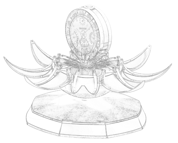 Турбийон Минутный репетир Индикатор запаса хода День недели Дата Месяц Индикатор цикла високосного года Вечный календарь Фаза луны Время второго часового пояса Индикация запаса хода механизма боя Уравнение времени Восход Закат Карта неба Вложение 134408 Празднование 250-й годовщины мануфактуры в 2005 году было стратегическим событием, которое началось в 1999 году. Именно тогда перед командой специалистов было поставлено задание разработать концепцию специальных мемориальных часов. В часах должны были быть воплощены техническое мастерство и потенциал, которые компания обрела за 250 лет своей истории. Вложение 134409 Всего было выпущено 7 экземпляров между 2005 и 2007 годами. А уникальная версия с черным циферблатом была продана на аукционе Antiquorum 3 апреля 2005 года за 1 876 250 швейцарских франков, став самыми дорогими современными часами, проданными с аукциона. Вложение 134410 Создание часов с индикацией на обеих сторонах корпуса заняло 4 года (2000-2004). Конструкторы VC создали Калибр 2750 (834 детали). Как создать очень сложные часы, сохранив при этом изящность корпуса? Это было первым препятствием, которому противостали дизайнеры. Вложение 134411 Первым шагом была разработка модели в программах CAD и 3D, чтобы быстро оценить минимальные размеры корпуса для Калибра размером 36 х 11.25 мм. Вложение 134412 Вторым шагом были эскизы и рисунки, особенно все, что было связано с ушками и их специфической формой. Затем ушки часов были спроектированы в 3D. Вложение 134413 Тот факт, что диаметр механизма составляет 36 мм, никого не расстроил, а вот толщина Калибра 11.25 мм и требования двусторонней индикации – эта задача заставила главного дизайнера Винсента Кауфмана хорошо «поломать голову». Вложение 134415 Первый удовлетворяющий запросам вариант корпуса был огромным – 50 мм, и это без учета ушек! Но это было невозможным по причине того, что такие часы очень неудобно сидели бы на запястье. Команда создавала различные модели, используя стерео литографию. В итоге получился оптимальный размер – 47 мм в диаметре и 17.8 в толщину. Вложение 134416 Этот размер встречается в современных моделях часов, которые относятся к спортивному часовому сегменту или к тем, которые хотят произвести незабываемое впечатление. Vacheron Constantin хотели создать классические часы, которые выглядели бы сдержанно. Вложение 134417 Чтобы сократить значение толщины, дизайнеры воспользовались приемом искривления корпуса. Конструкция корпуса была поделена на 3 части: безель, обратная и лицевая стороны корпуса. Вложение 134418 Следующей сложностью была форма ушек часов. Они должны были быть загнутой формы без прямых грубых линий, которые бы визуально прибавили весу часам. Вложение 134419 Представляя собой ¼ часть мальтийского креста, вогнутые ушки припаивались к корпусу. Вся сложность работы требовала обработки вручную. Вложение 134420 Благодаря конструкции, в которую интегрированы все элементы, часы не имеют вид многослойного бутерброда. Их удобно носить и все пропорции гармоничны. Tour de l’Ile были первыми часами в честь юбилея и все последующие были вдохновлены этой моделью и впитали в себя ее эстетику. Помимо размеров корпуса следующей трудностью было размещение 7-ми корректирующих кнопок, коронки и кнопки репетира. Механизм управления репетиром было расположено на безеле, который нужно было повернуть для его активации. Вложение 1344
