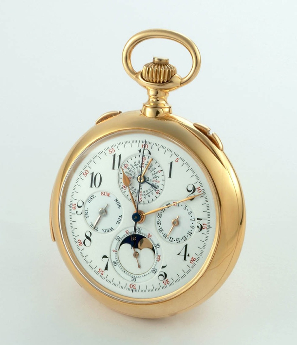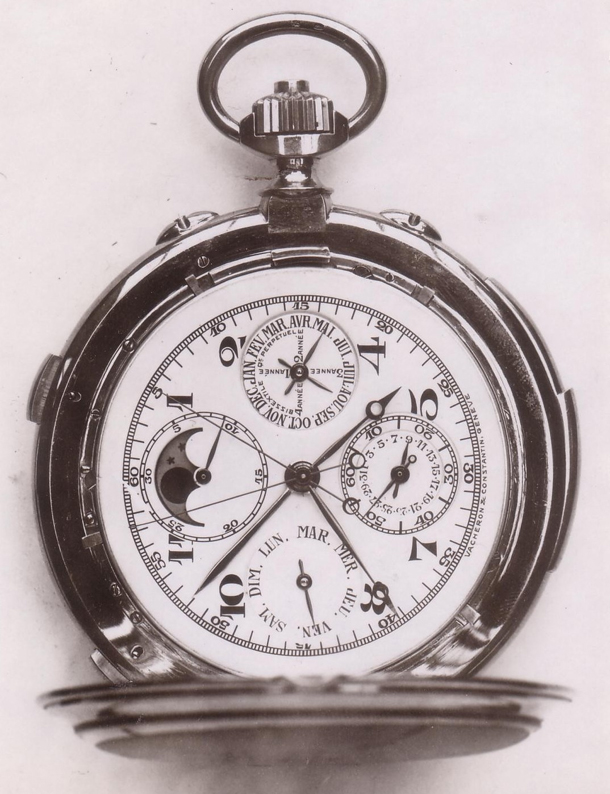 Vacheron Constantin – мастер усложнений, многие модели которого стали вехами в истории изготовления часов. Стоит разобраться: что именно принято считать усложнением? Согласно словарю часового дела Бернера часами с усложнением считаются «состоящие из большого количества компонентов: хронограф и репетир – это часы с усложнением». Вложение 134337 Заглянув в Википедию, можно прочесть: «В часовом деле определение усложнения относится к любой особенности часов, кроме индикации часов, минут и секунд». Это определение исключает наявность приспособлений для более точного хода механизма, например, турбийона. Итак, что-либо большее, чем индикация времени и турбийон, принимается за усложнение. Вложение 134338 Первые часы с усложнением (механизм подписан Vacheron a Geneve) в форме мальтийского креста датируются 1790 годом. Часы указывают день недели и дату на красиво гравированном циферблате. В 1810 году были выпущены первые карманные часы с минутным репетиром. В 1824 году мануфактура выпустила тройной календарь, в 1884 был выпущен великолепный вечный календарь с уравнением времени, в 1913 году к вечному календарю добавились функции времени восхода и заката солнца. Вложение 134339 Раздел I - Карманные часы В обратном порядке рассмотрим пятерку самых сложных часов в этой категории от VC 5) 7 усложнений – 1905 год: Сплит-хронограф Минутный репетир День недели Дата Месяц Вечный календарь Фаза луны Вложение 134340 В конце 19-го века Vacheron начал выпускать часы с различными усложнениями: минутным репетиром, вечным календарем или хронографом. Но создание самых первых сложных часов датируется 1905 годом. Это был вечный календарь (индикация 48 месяцев вместо привычных 12-ти с индикатором цикла високосного года) с минутным репетиром и сплит-хронографом. Вложение 134341 В 1901 году мануфактура выпускала подобные часы, но с простым хронографом. Экземпляры, подобные этому, выпускались под заказ и являются уникальными в своем роде. Вложение 134342 4) 9 усложнений – 1932 год: Сплит-хронограф День недели Дата Месяц Индикатор цикла високосного года Вечный календарь Фаза луны Турбийон Индикатор запаса хода Вложение 134343 Выпущенные в 1932 году эти часы являются единственными карманными часами Vacheron Constantin с большим количеством усложнений в которых есть турбийон. Его регулировка была доверена Эдмунду Оливье, который был не только прекрасным часовым мастером, но и настоящим виртуозом по части регулировки механизмов. Одной из отличительных особенностей этих часов является то, что на точность механизма не влияет функция хронографа. В 1934 году часы получили 1-й приз после испытаний в Женевской обсерватории, а в 1939 году были представлены на Национальной Швейцарской выставке в Цюрихе. Вложение 134344 3) 9 усложнений – 1928 год: Минутный репетир карильон (3 молоточка) Сплит-хронограф День недели Дата Месяц Индикатор цикла високосного года Вечный календарь Фаза луны Будильник Вложение 134345 Выпуск этих часов начался в 1914 году и был завершен спустя 14 лет в 1928 году. В 1948 году часы были проданы графу Guy de Boisrouvray кузену принца Монако Rainier III. Считается, что часы хранились среди семейных ценностей, пока не были проданы в 2003 году по впечатляющей цене 1 103 500 швейцарских франков. Вложение 134346 Эти часы впечатляют не только большим количеством компонентов – их 657, но и одиннадцатью стрелками. Это одни из двух чрезвычайно усложненных часов Va