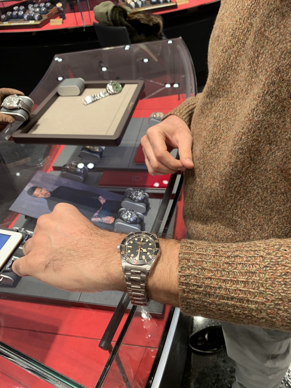 Панераи как немного из другой лиги. И сложно по пунктам дать почему. Тюдор 925 действительно для больших энтузиастов часового дела. Мне было бы непросто ухаживать за ними. А ВВ58 как-то не лег. Но на 50% думаю это общее положение дел витрин ЦУМа. Вот напротив в 4Seasons очень приятный салон и персонал - и впечатление сразу иное от часов Tudor. |
