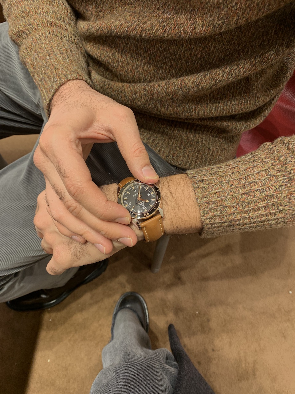 Начал с "любимого" ЦУМа. Праздники отшумели, туристы уехали, девочки отоварили свои подарочные карты и уже сдали обратно в течение двух недель за кеш сумочки, а ощущение того, что ты находишься в транзитной зоне какого-то ближневосточного аэропорта и от скуки идешь в магазины дьюти-фри - не исчезло) Консультант один на все витрин 10, зажатых между корнерами Chopard, Rolex и вроде Hublot. Попросил найти продавца, но пришлось отвлечься тому самому единственному, кто, к слову, работал уже с каким-то джентельменом. Тот без лишних прелюдий перешел к делу, попросив показать пальцем что меня интересует. Примерял серебро еще раз. Часы в пленках, отсвечивают, но выглядит интересно. Вложение 3360911 Ремешок мне не понравился - это чрезмерное сужение, при том что кисть довольно тонка. Вложение 3360912 Задерживаться не захотелось. Быстро накинул ВВ58 Вложение 3360913 И перешел через площадь. Там никого из покупателей и довольно приятная дама чуть старше тургеньевского возраста предложила мне не стесняться в выборе и посмотреть почти все. Вложение 3360915 На контрасте с проходным двором ЦУМа - уже чувствуешь, что попал в более правильное место. В общем мы минут 20 неспешно примеряли одно, другое, третье, пятое, седьмое. Так как SM Diver я отсек еще в прошлый раз - смотрел в это линейку Heritage исключительно. В целом больше всего понравились эти Вложение 3360914 и '57, но их забыл сфотографировать не запястье. Возможно, я устал от металлических браслетов и оказалось, что сердце просит ремешка. Или просто на роль дайвера я подожду один из Пелагосов... Да, еще хороши были своим сатинированным браслетом мунвочи с хезалитом. Поблагодарил консультанта, оставил данные для связи и перешел улицу для последнего броска. Там также никого. Три консультанта и охранник. Попросил 42 и 44 размеры из Luminor с сендвичем. Примерил две модели. Эта понравилась больше. Вроде 1537. Но цена немного уже в другой лиге. Вложение 3360916 Откланявшись, ушли в чудесный Londri - обдумать покупку за бутылочкой красного. |