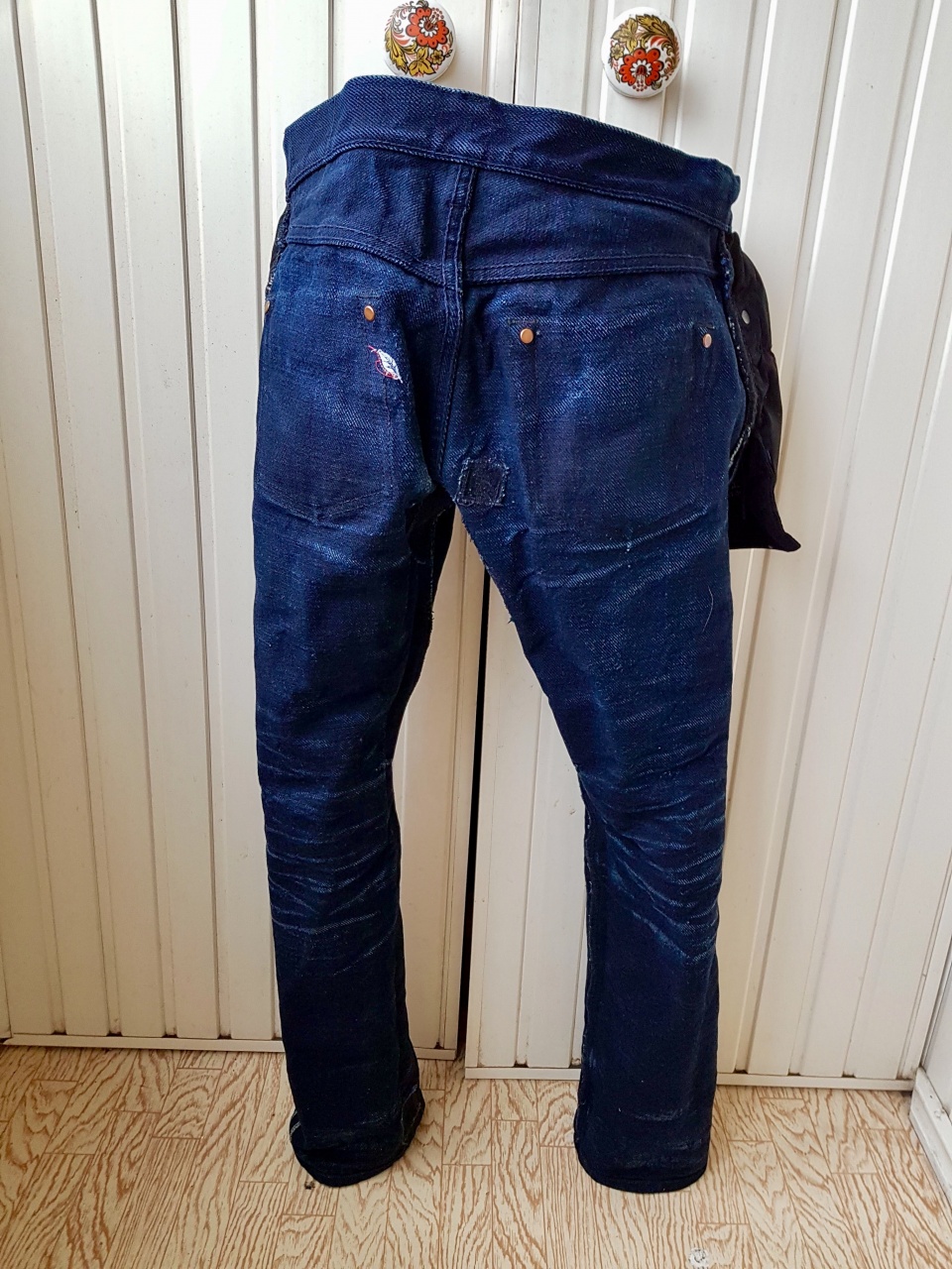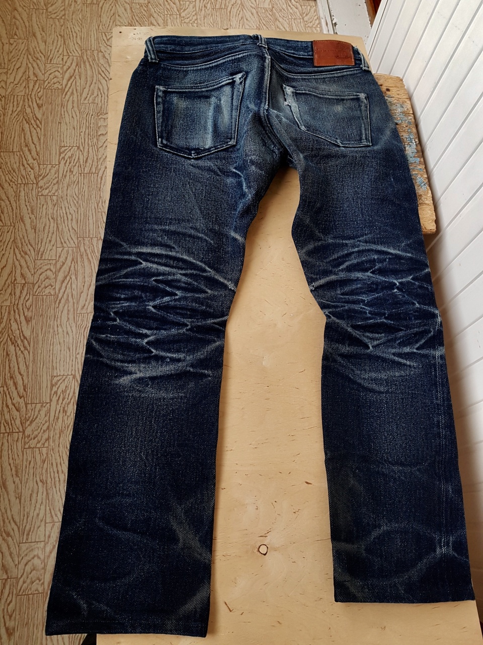 Не говори ....сюрприз так сюрприз ;) ....коллекционная вещь оказалась ! Продукт совместного сотрудничества Blue in Green и PBJ .. Действительно , 24 унцовые PBJ ....в 013 фите было выпущено всего 21 штук , инфы по ним совсем мало https://scout.heddels.com/brands/pur...aw-denim-jeans , насколько я соорентировался , где-то 2010-11 год .....ещё ваяли из подобного денима в 005 и 007 фите . Деним брутальнейший вообще , диагональ гигантская :eek: ....относительно мягкий , поэтому штан весь в пробоинах ....24 унцовый Самурайский и Хартовский XHS помягче будут ;) . Штан затаскан в хлам , а после воды до сих пор стоят :D Вложение 2550470Вложение 2550471 Единственно , опять лоханулся со стиркой ....думаю , постираю их с чувством , закинул в стиралку в режим 60/400 ....после воды скукожились дико , пояс 44/40 , хипс 110/105 , бедро 31,5/30,0 ....но все это фигня ....главное , инсим ....был изначально 29,5 дюйма , стал 28,5 :cool: .....ничерта не понятно , как они их там стирают :confused: ....ушатанный штан и ещё такую усадку даёт :eek: Я даже , перед стиркой не стал выворачивать наизнанку ....а зря , ещё и заломов нахватался , вода на сливе как чернила ....очень тяжёлый деним .... по фактуре и плотности больше тянет на мои 32 унцовые ! |