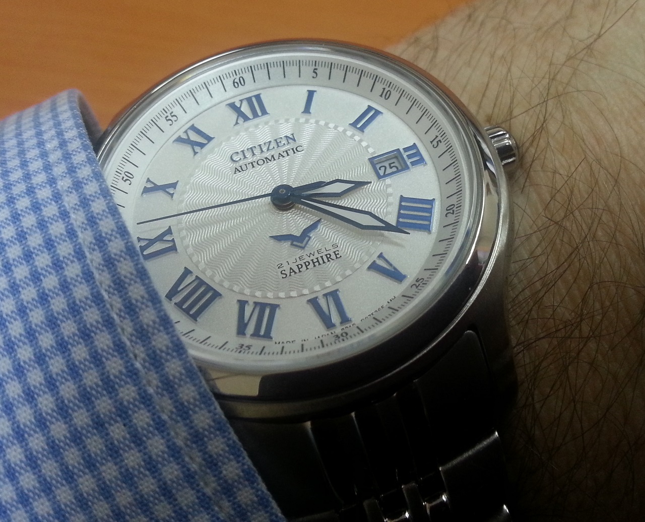 Часы и впрямь неожиданно порадовали. никак не думал столько позитива получить за их цену. на форуме в Москве, кстати, продают недорого - мелькали. и меня, честно, поразила точность хода. ну и римские цифири радуют. сами часы маловаты немного..чуть побольше бы - люблю большие часы. но, как мне объясняли, "классика/ под пиНджак" 39-41мм - самое "то". напоминают какую то модель "из старших".. к сожалению, не помню. |
