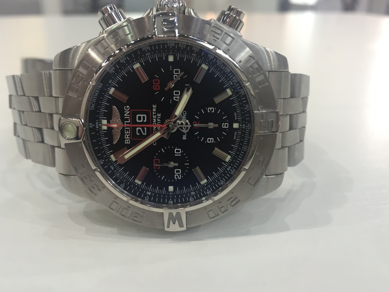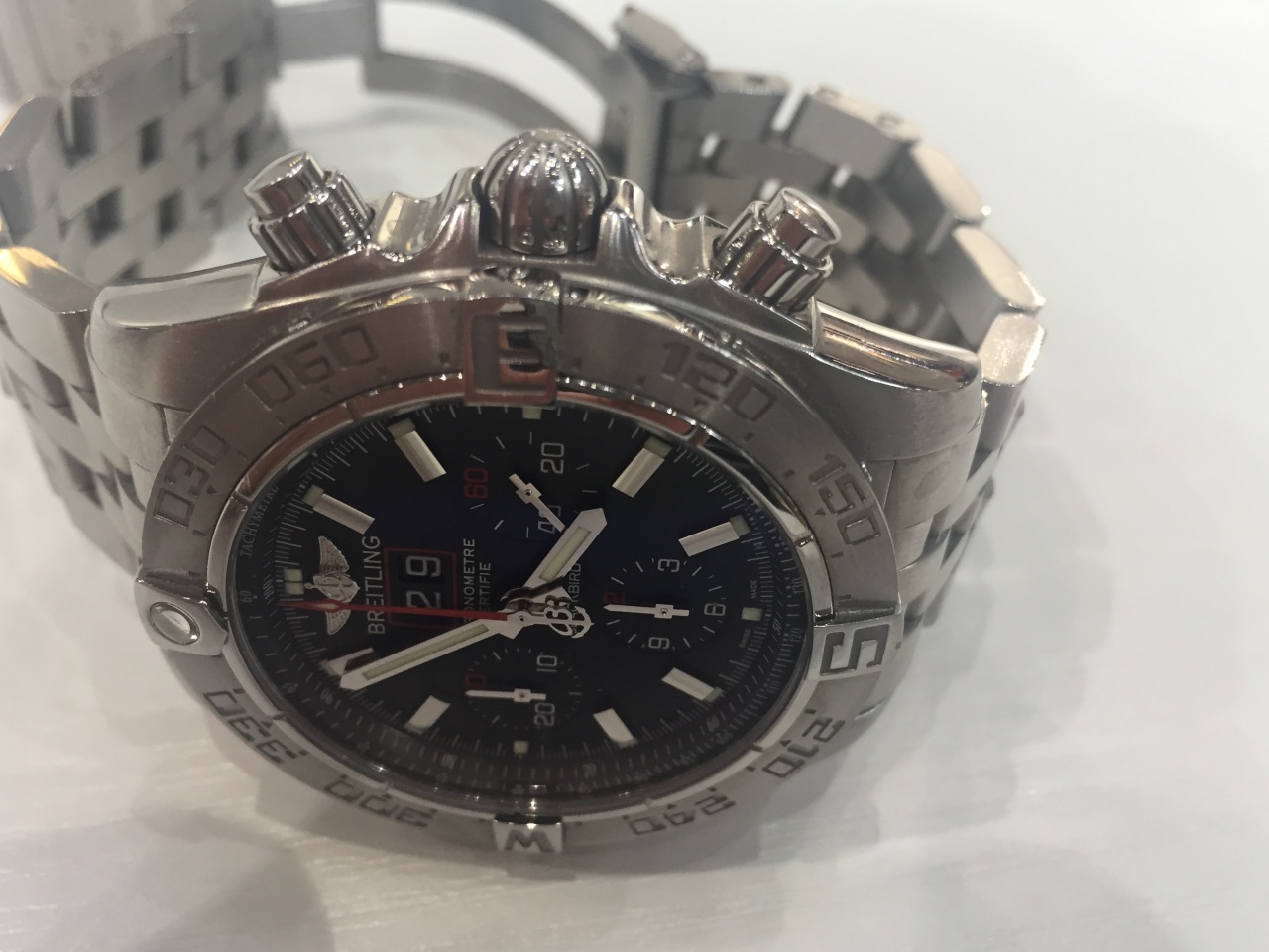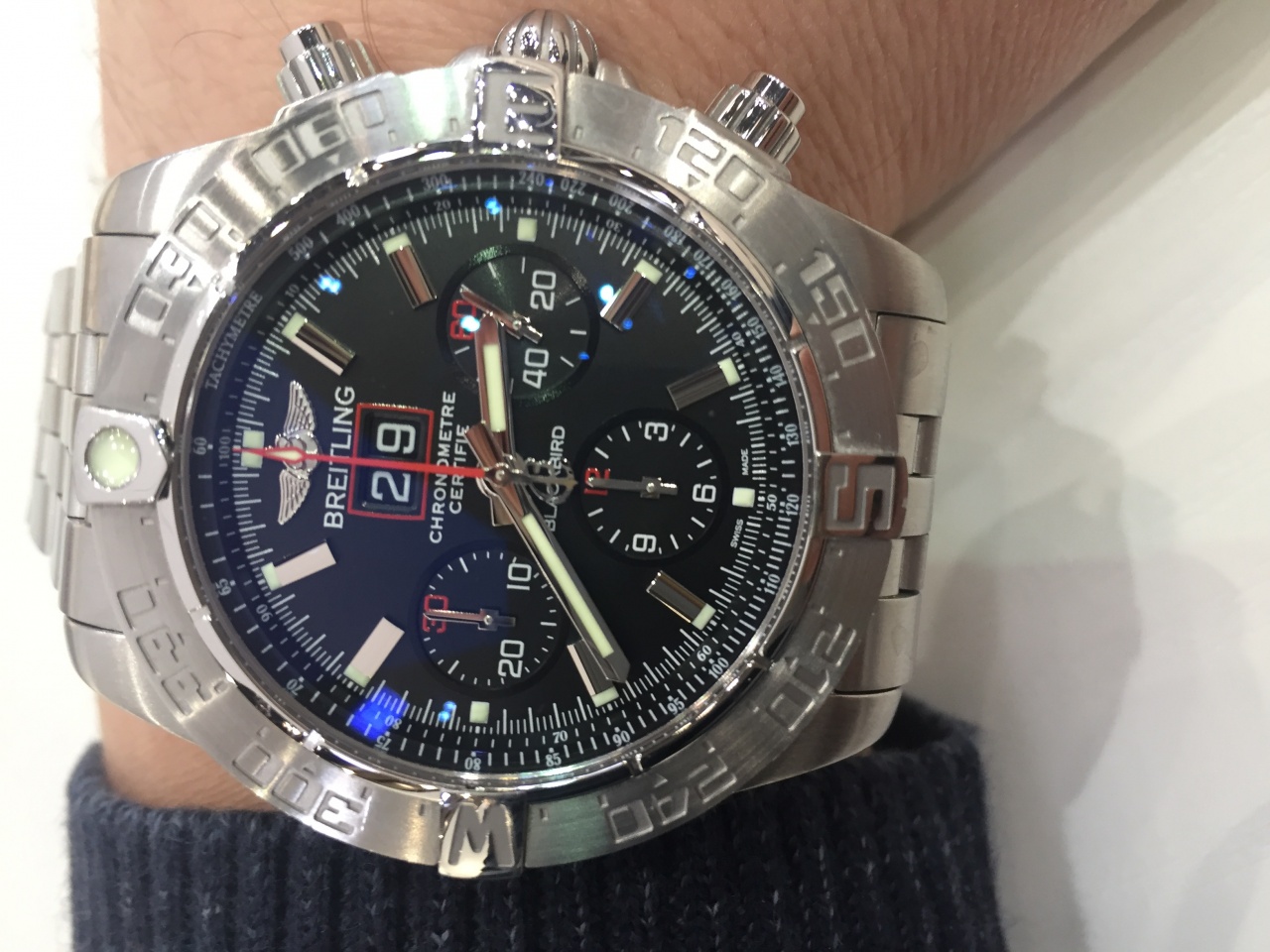 Недавнее приобретение - Breitling Chronomat Evolution. Не по душе пришлись текущие модели, Эволюшн же зацепил, особенно с браслетом (прикупил, но пока ношу на ремне, прицепил для фотографии. Качество изготовления браслета поражает, конечно). Улётный аппарат, механизм надежный и точный, в каждой детали чувствуется качество, в общем доволен |