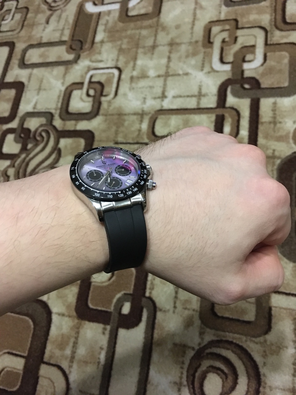 Несмотря на сверх радостные комментарии на "АЛИКЕ" о часах что мол за 100 баксов вы получаете часы чуть ли не качеством под 1000. На самом деле изощренному покупателю сверх чего-то ждать не стоит. При этом для обычно пользователя сапфировое стекло + керамический безель, +водозащита, +хронограф, за 7000 рублей, а мне на распродаже достались вообще за 4800.Вообще песня. Описанное мной ниже либо вообще не будет проблемой либо косячность будет конкретного экземпляра. Но вот мои 5 копеек Корпус -------полирован идеально, отражение как в зеркале. Грани точные. Безель ---------"наверное мой экземпляр косячный" сам полирован но под углами косых лучей источника света и под лупой еле видны рыквины (ямки) на безеле, ну как я могу понять "литье" самой керамики + еще маленькие царапки причем видно что не дополировали. Причем безель не поцарапать я пробовал. Ну тут справедливости сказать как говориться разрешите дое..ся. Я как обострённо часовой больной найду косяки везде. Стекло ------- вроде сапфировое, проверил каплей. Стоит ровно. Циферблат------- пару соринок есть. Печать логотипа и надписей -супер. Стрелки --------- стоят ровно точно. Метки------ наклодные ровные без проблем. ЗГ и КНОПКИ------ ЗГ завинчивается внешней прокладки нет. Кнопки тугие завинчиваются. РЕМЕШОК--------- вот тут точно проблема сам ремешок из резины но очень мягкий прямо через чур. Из за чего корпус весом тянет его, носить не удобно. Ремешок короткий на большую руку не пойдет. Мне настроить не удалось Либо сильно свободно, часы сползают в низ к запястью, либо туго. ВОТ фото часы на запястье 18,3 см. Вложение 3127489 Вложение 3127490 |