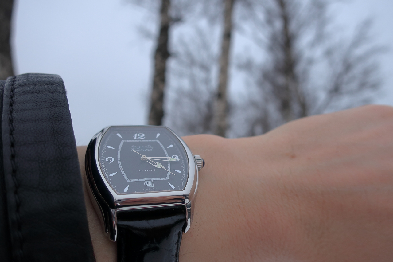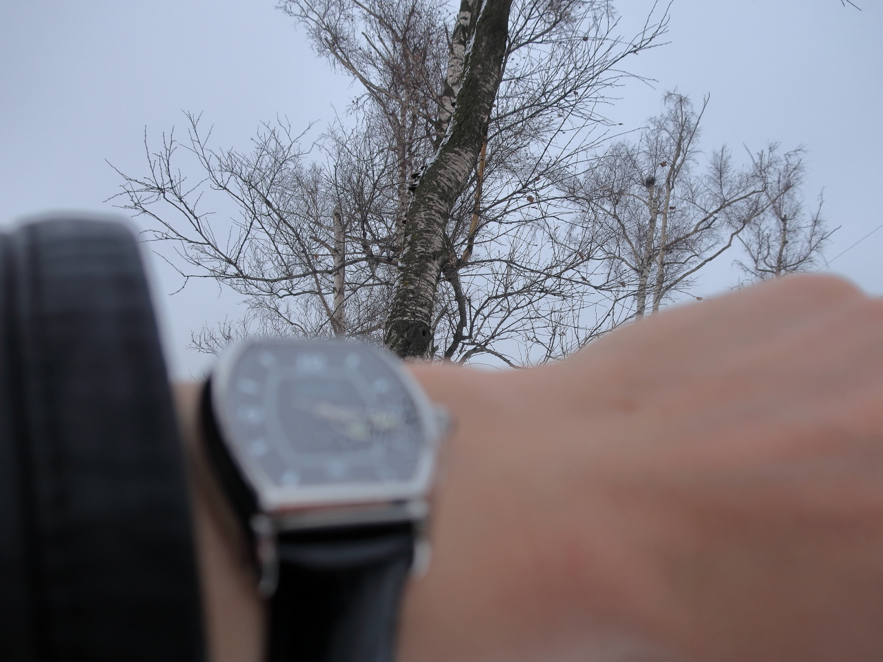 Часы,небо,снег,берёзки.:)