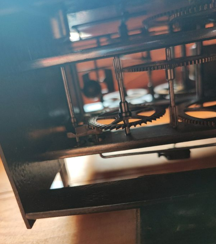 Здравствуйте уважаемые форумчане! Купил два четвертных механизма – один не знаю ни производителя, ни время изготовления, второй – Lenzkirch (фото выставлю, когда получу). Над механизмом кто-то хорошо поиздевался, поменяв оригинальную пару: анкерное колесо-вилка на пару под короткий маятник, заменив молотки и поставив крепеж под звонок. Прошу помочь определить производителя механизма, ориентировочное время изготовления и совет, следует ли искать оригинальную пару для замены, учитывая проблему с запчастями, и то, что механизм в рабочем состоянии. Заранее благодарю за ответ!