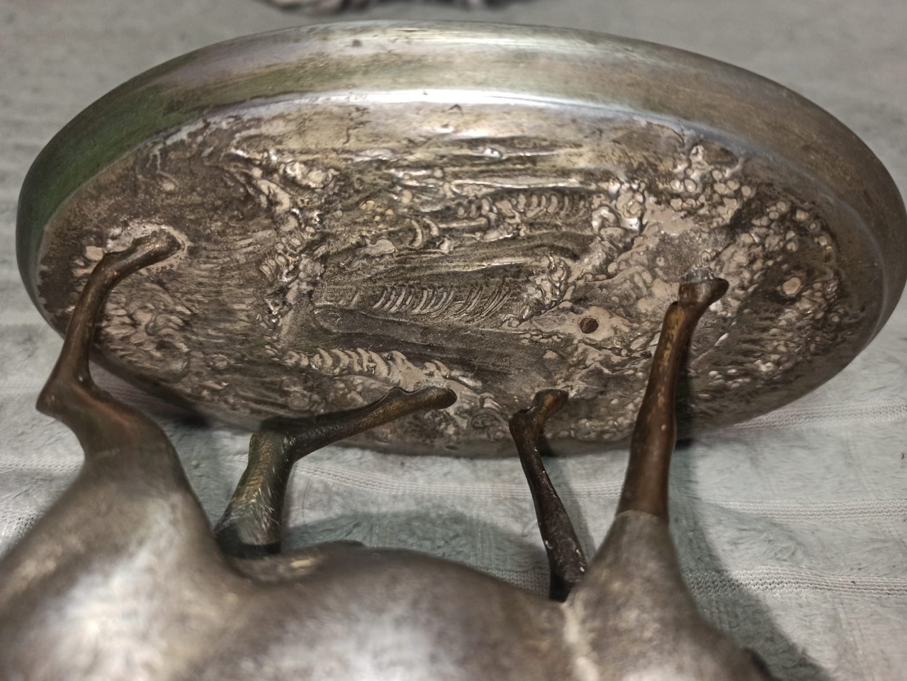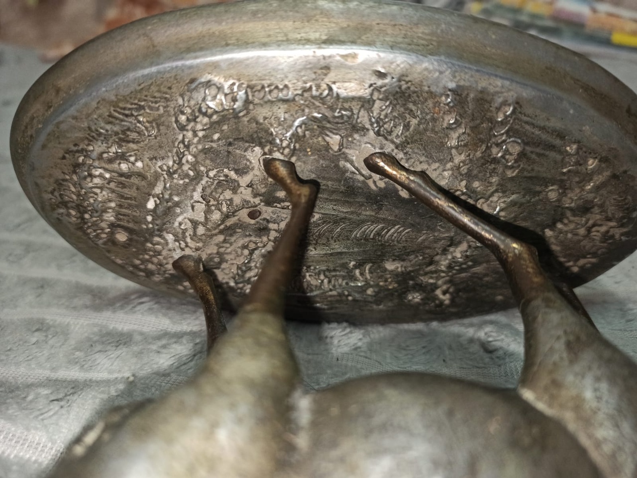 Заморочились - это к вопросу сборки из разных сплавов, туловище белое, ноги и рога желтые, это было сделано осознанно, именно для того, чтобы это было видно. а могли же просто сделать однотонного и не заморачиваться. Паять такую массивную деталь не самое удобное занятие. Гораздо проще сделать покрытие (например чернение, золочение, серебрение) но был выбран наиболее сложный вариант изготовления.