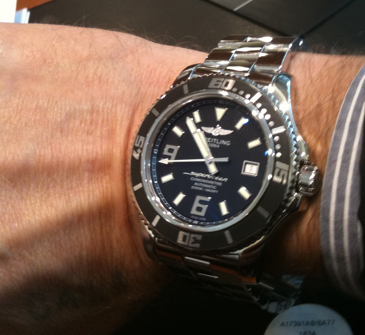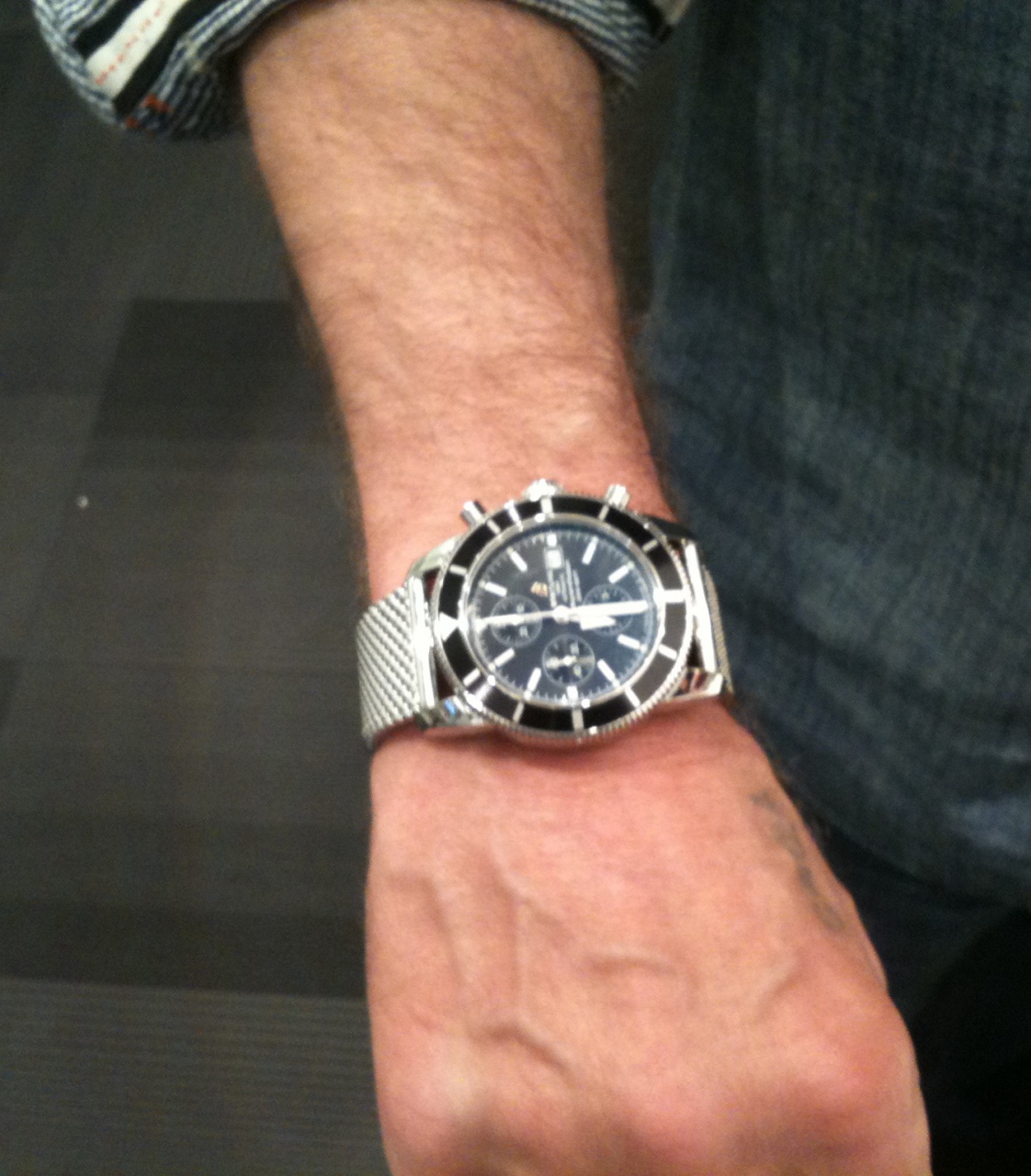 Вложение 273651 А это часы,которые я уже хочу купить после косяка--superocean heritage chronographe- Хотелось бы услышать ваше мнение по поводу того,как они лежат на руке.Спасибо всем,кто ответит. |