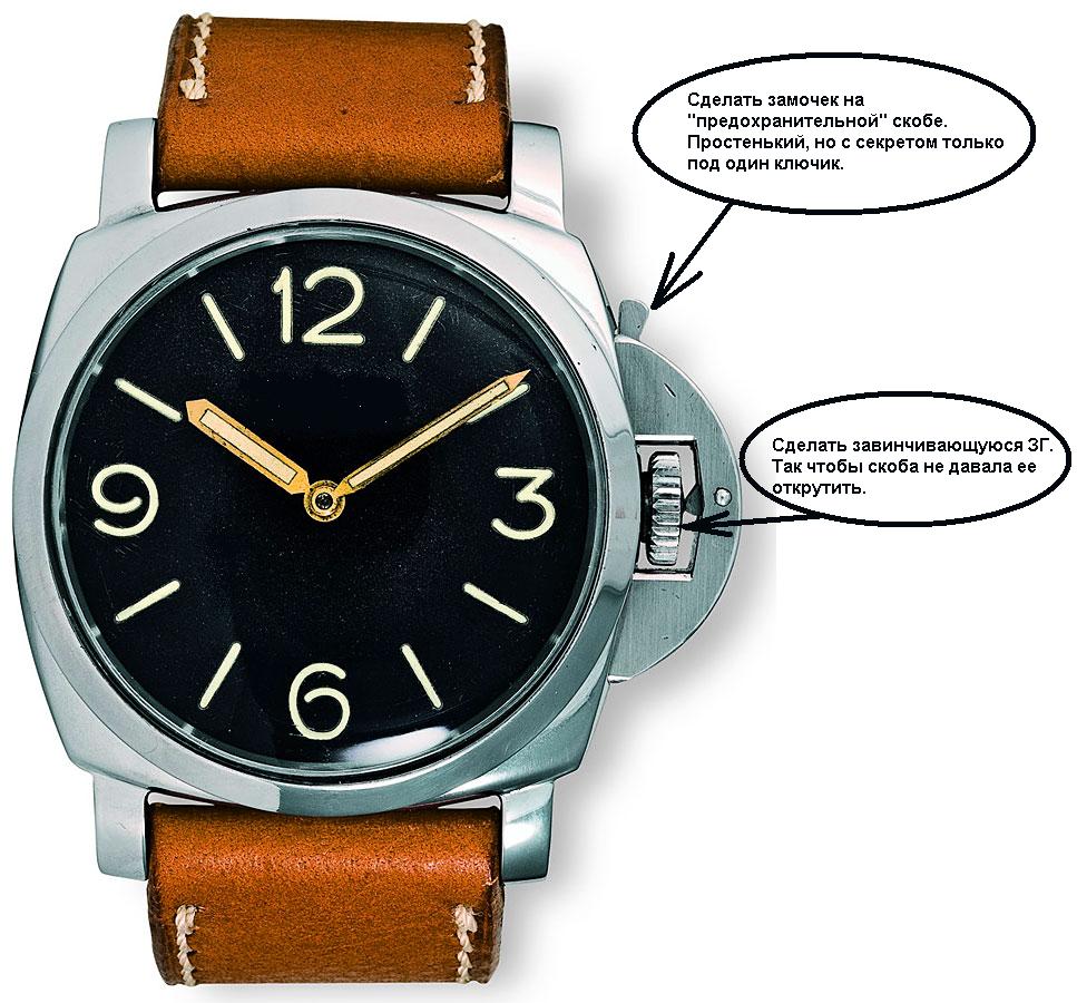 Предлагаю свой вариант решения проблемы: http://f2.s.qip.ru/hBxM6wu.jpg "Устройство" представляет собой подставку, на которой размещаются часы, с шестеренчатым механизмом для завода, работающим от ключа. Ключ собирается из двух половинок, которые принадлежат паре. Проблема перезавода решается просто - путем подбора оптимального числа зубьев на шестернях и их размера :) В этом случае головки должны иметь форму маленьких шестеренок для зацепления с частями механизма:) |