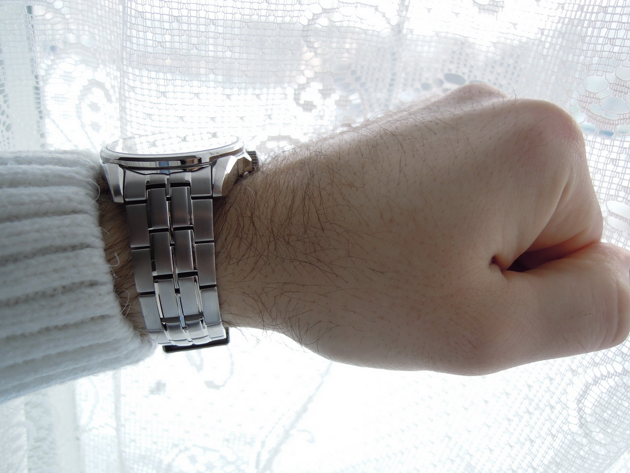 Подогнал браслет, пришлось снять аж 4 звена. Сели отлично, и не жмут и не болтаются.