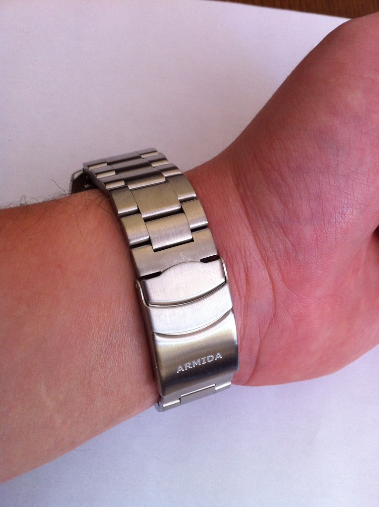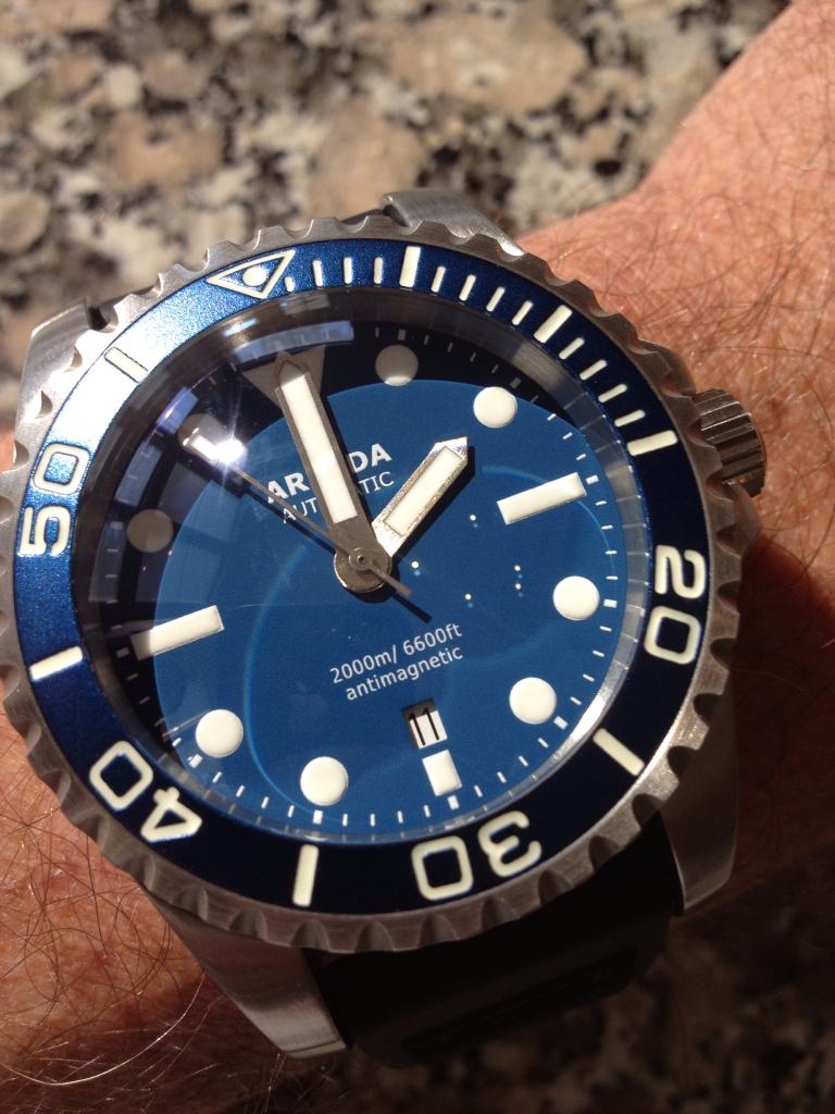 ARMIDA A4 2000m Diver ETA 2824-2, цена 649$ включая доставку. http://www.armidawatches.com/a4-2000m.php The Armida A4 2000m is a functional diver watch. Вложение 406311Вложение 406312Вложение 406313Вложение 406314Вложение 406315Вложение 406316Вложение 406317 Its movement is a Swiss ETA2824-2 - 316l stainless steel case - Blue dial and bezel - dial 2 - Brushed silver hands - BGW9 lumed bezel, hour markers and hands - 44 mm case diameter - 45mm bezel diameter - Lug to lug 54mm - Lug distance 22mm - Height 21mm - Sapphire crystal 4 mm high dome - Anti reflective coating on the inside crystal - 22mm steel bracelet and rubber strap - Waterproof to 2000m/6600feet - Screwed and signed crown 8mm - 1 Year International Warranty Источник фотографий:http://www.watchfreeks.com/view_topi...82&forum_id=38 |