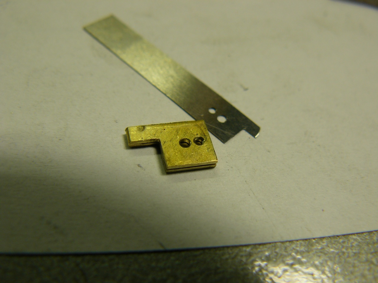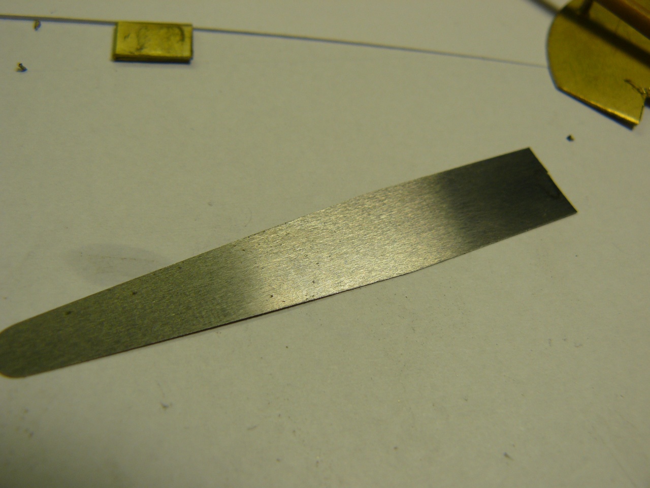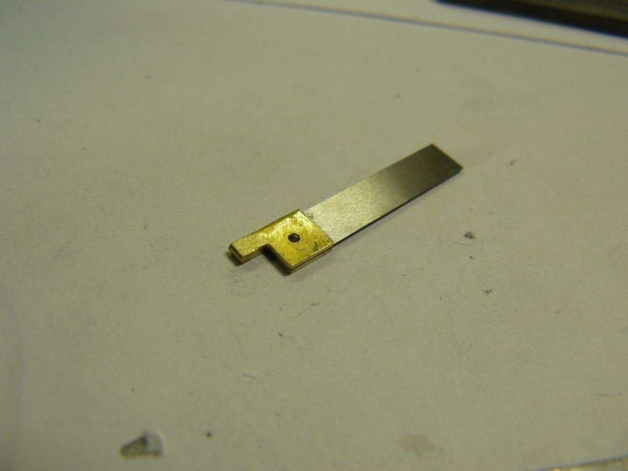 Вложение 686737 этот уже не спасти, решил сделать новый Агат, спасибо что делаешь циферблаты из толстой латуни: Вложение 686742Вложение 686743 вырезал абразивным кругом в Дремеле, перед сгибом нагрел и сразу опустил в воду - чтобы латунь стала мягче Вложение 686744Вложение 686747 пластину из щупа тоже вырезал Дремелем - так ее не ведет, в отличии от ножниц, и заусенцев и замятин на краях нет Вложение 686759Вложение 686748 в верхней оправке сделал вырез под специфическое крепление Вложение 686749Вложение 686756 далее сделал еще одно отверстие под заклепку Вложение 686750Вложение 686751 абразивным кругом сделал вырез в пластине, чтобы получить двойной подвес, потом подтачивал алмазным надфилем Вложение 686753 нижнюю оправку делал аналогично верхней, только без выреза, и из более толстой латуни готовый подвес Вложение 686754Вложение 686755 |