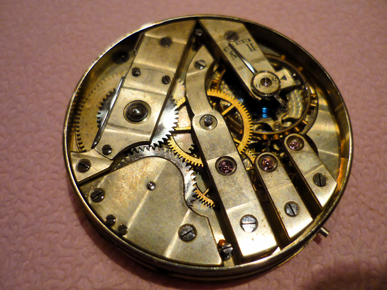 Спасибо, на молотке поискал, увидел.... Еще вот на ebay нашел такой же, только без цифера и стрелок. Был продан в марте 2013. Обратил внимание на общее состояние и количество ставок... http://www.ebay.ca/itm/Spring-Detent...-/111038450122 В более точных измерениях он, оказывается, диаметром 47 мм. Буржуины датировали практически такой же механизм 1880-м годом. Типа, сделан из никеля в Свиссии для рынков Англии и Америки... Ну, теперь общая картина более-менее понятна, буду думать, что с этим богатством делать дальше.....:) |