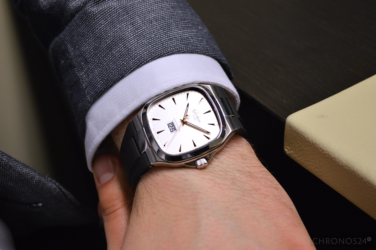 Andreyavt, все ваши варианты кроме одемаров и наутилуса тяготеют по стилю к типичной костюмной классике. Рассматриваете только швейцарцев или породистый немец тоже сгодится? Как вам Glashutte Original Seventies Panorama Date http://www.ablogtowatch.com/glashutt...atch-hands-on/ в стиле 70-x годов, которые я как-то было дело уже советовал. Они хоть по цене и ниже вашего бюджета, но учитывая, что вам нравится минимализм и неброская солидность я считаю очень подходящий вариант!!! На не крупном запястье смотрятся очень хорошо.