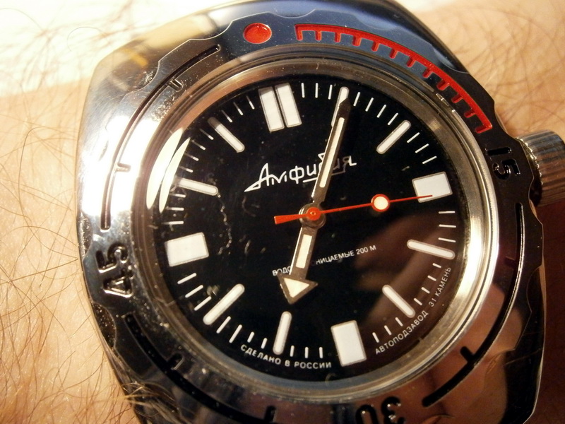 Наконец получил свои часы. Современная «бочка», одна из первых. Мне все не давал покоя абсолютно плоский, пустой визуально циферблат с «ляпами» из серебристой краски, поэтому часы отправились к Станиславу Strong. Я просил только голубой люминофор, но сам все сомневался, может лучше стрелки сделать зелеными? Сомнения разрешил Станислав, который сам принял такое решение, т.к. синий люм на стрелках вышел невыразительным. Результат мне понравился. Теперь часы приобрели законченный вид как на свету, так и в темноте :) Первая фотография – до, остальные – после.