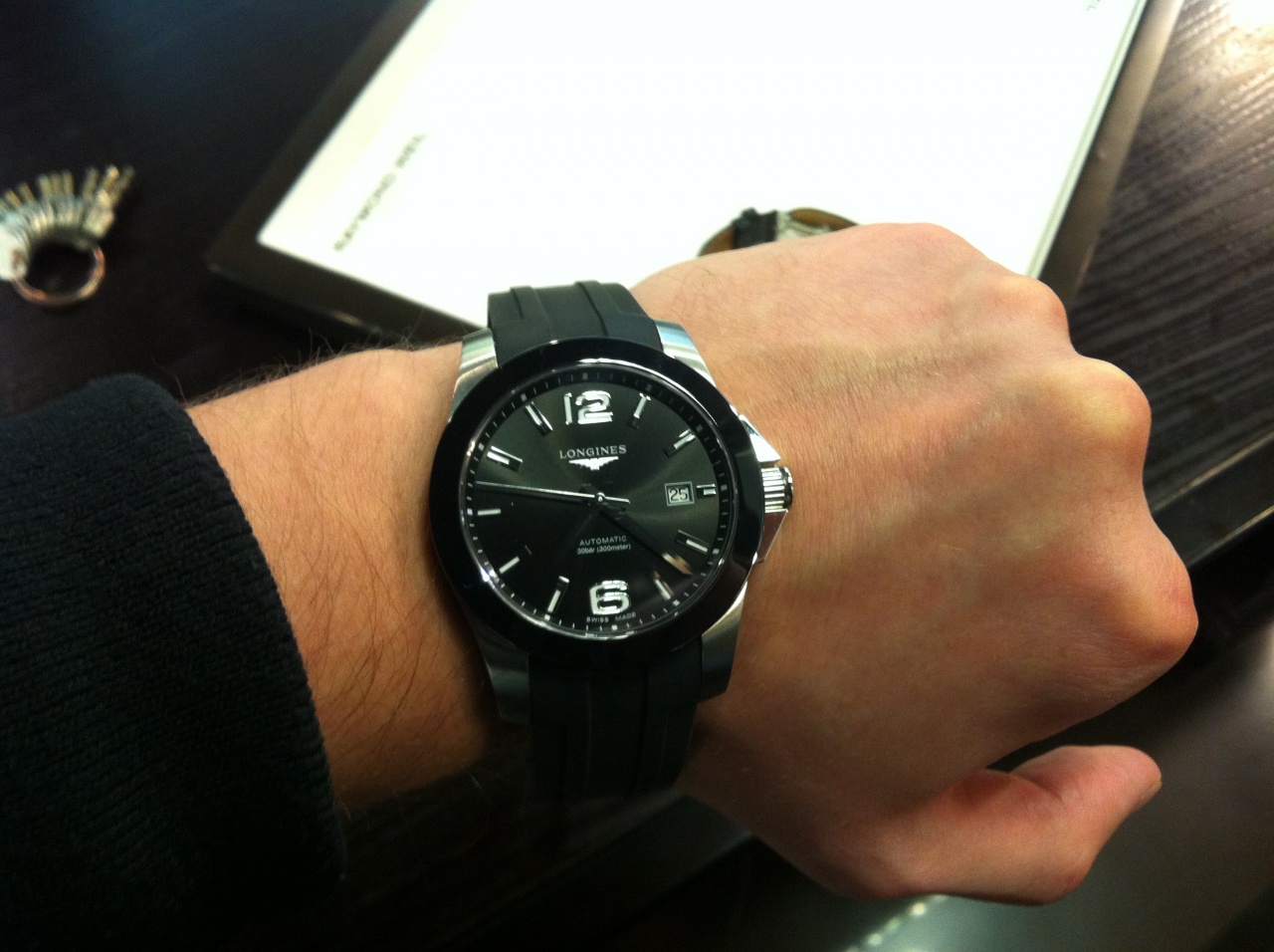 Каучук изначально не слишком эластиный, но со временем принимает форму руки. По тактильным ощущениям мне сложно сказать, кому-то может нравиться, а кому-то может и нет, лично мне каучук приятен, дискомфорта нет. Браслет мне приносил больший дискомфорт. Вторые часы на кож.ремешке, не могу сказать, что какие-то из них более комфортны) Другой момент, что конквесты без керам.безеля поставляются только с кож.ремешками или мет.браслетами, соответственно каучук необходимо будет докупать отдельно и застежку к нему тоже. И как показывает практика продать потом мет.браслет не просто, нужен редкий покупатель. Лучше уж брать часы тогда на кож.ремешке и к нему докупать кауч, т.к. кожаный ремешок из них делает более элегантные часы, которые можно даже одеть под костюм. |