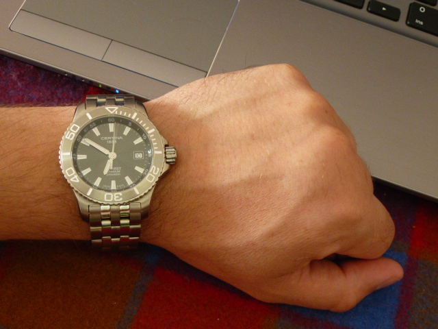 День добрый всем!!! Ну вот и прошел месяц со дня приобретения мной первых часов Certina First. В кратце впечатление за прошедший период такие: часы по прежнему радуют, ни сколько не надоели, титан ни чуть не разочаровал, скорее в этой модели он самое оно!!! Точность хода +4 сек за месяц. Очень нравиться как они светятся в темноте, просто с ума сойти. Во общем о покупке ни разу не пожалел, на данный момент выбрал бы то же самое. Всем Мира, Добра, Процветания!!!