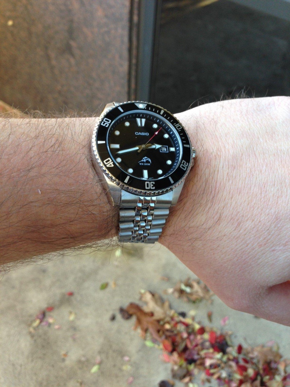 В серии MDV-106 есть часы на стальном браслете. Наверняка подойдет к модели на ремне. И это будет Casio, а не Noname с требуемой им подгонкой звеньев.