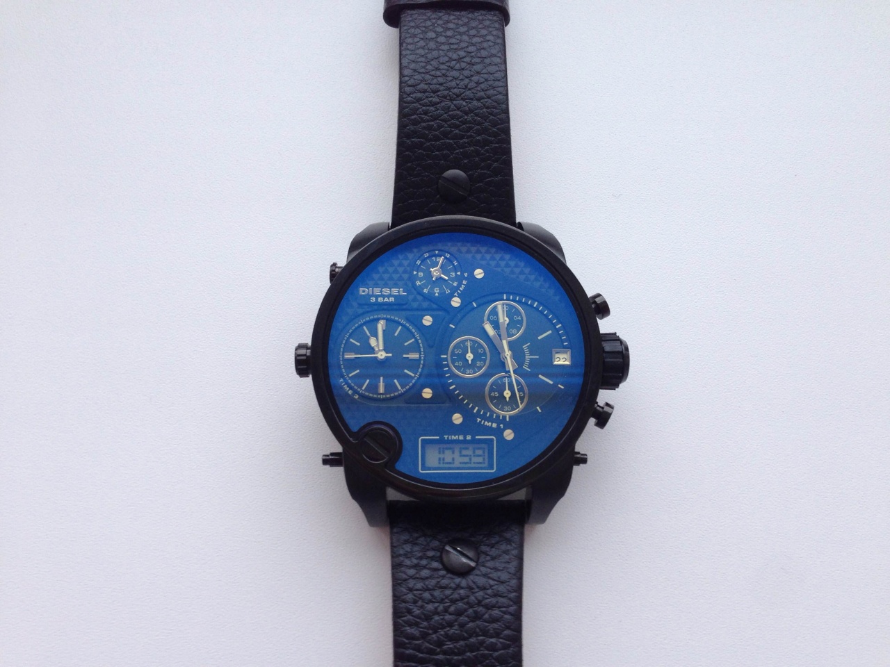 Вложение 876551 Какие я вижу отличия: (терминами не владею, описываю простым языком) 1. Окна time1, time2, time3 выполнены из матового серого материала. В оригинале виден блеск. 2. Блестящие винты. В оригинале они темные. 3. Фон рисунка плоский, в оригинале объемный. 4. Торец корпуса имеет невнятный, плоский ромбовидный рисунок, в оригинале рисунок объемный. 5. Вызывает сомнение нанесенный логотип Diesel на застежке. В оригинале качество нанесения значительно лучше. Мои выглядят вот так: (за исключением того что логотип на моих тоже блестящий) http://www.youtube.com/watch?v=Vix2Pnb-jj4 А вот так выглядит оригинал: http://www.youtube.com/watch?v=GJ8yj-wS17c |