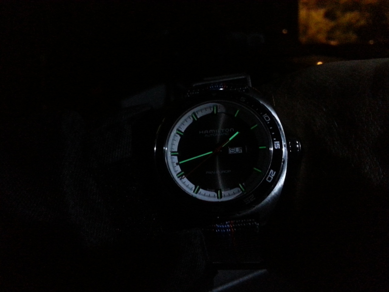Вложений: 2 Несколько слов по поводу светонакапливающего состава на стрелках и метках стрелок. Светится после хорошего заряда ярко не долго - минут 10. Выглядит этого хорошо. Затем минут 50 светится тускло. Но видно, какое время. Понять сразу где 12 часов сложно. Все метки стрелок одинаковые и только та, что на 3 часа чуть короче других. Примерно на 1 мм. В темноте разница не замента. И метки выглядят одинаково. По сути ориентир в темноте где какой час - это на положение часов на руке. Сфотать это свечение затруднительно. Выкладываю фото того, что получилось. З.Ы. Для ночных военных операций часы не подходящие. :D Вложение 1045975 Вложение 1045976 |