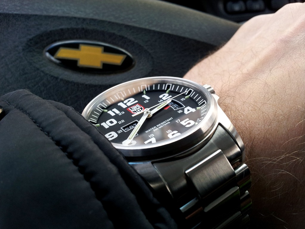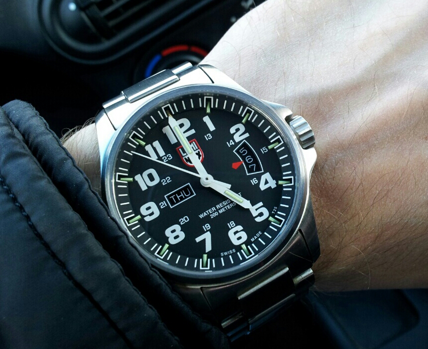вот мои самые хорошо считываемые часы Luminox 1822. Швейцарские. Дизайн как у авиационных и военных датчиков/приборов/часов: черный цифер, белые стрелки (различные по длине). А эти парни абы какой дизайн просто так не выбирают :) Время всегда хорошо видно, даже с большого расстояния. Сапфир с антибликом, точность кварцевая, триголайт в виде постоянно светящихся в ночное время колбочек (производителем заявлено свечение до 25 лет). Тот же люминофор через два три часа теряет силу свечения .. Все индексы на часах с триголайтом зелёного оттенка, 12 часовая метка с желтым. Водозащищенность 200м. http://forum.watch.ru/attachment.php...7&d=1446531694 http://forum.watch.ru/attachment.php...3&d=1491542275 Следующее фото с инета, но мои светят также, уже третий год пошел ) разве что чуть менее насыщенно чем на фото. http://forum.watch.ru/attachment.php...1&d=1493268330 |