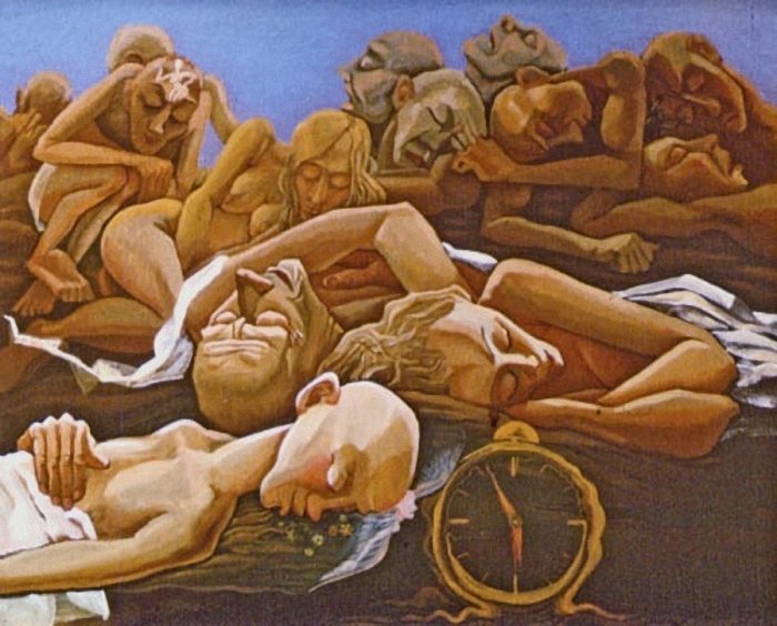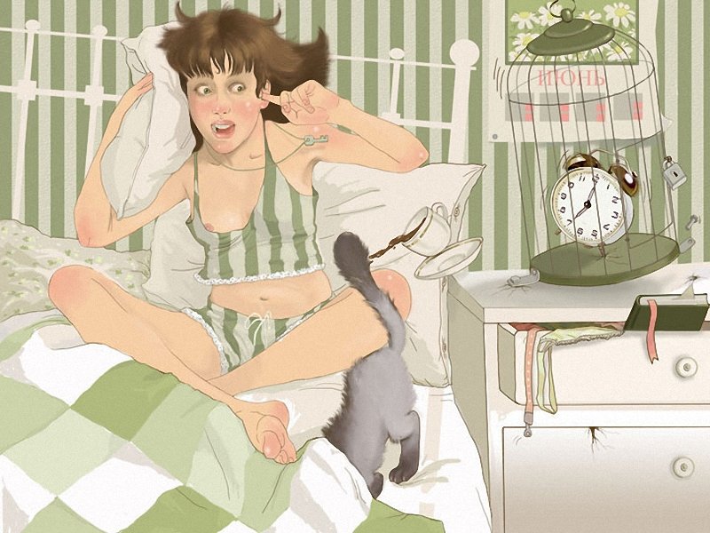 Вложение 123985 Будильник (англ. Alarm Clock – дословно сигнальные часы) — часы, в заданный момент времени подающие звуковой и (или) световой сигнал. Русское название «будильник» указывает на основное назначение таких часов — побудку хозяина утром. Также будильник может применяться как «напоминатель» или таймер. В древнем Китае в роли будильников применялись градуированные палочки из смеси смолы и опилок, к которым ниткой привязывался грузик. Палочка поджигалась, и когда она догорала до нитки, груз падал на металлическую подставку. В древней Греции похожие устройства применялись к водяным часам. Механический будильник построил американец Леви Хатчинс в 1787 году, но устройство звонило только в 4:00. Будильник, который можно настроить на любое нужное время, запатентовал в 1847 году француз Антуан Радье (Antoine Redier). Правда, историки до сих пор спорят об авторстве и Хатчинса, и Радье. В 1908 году фирма Westclox предложила будильник «Биг-Бен», в котором роль колокола играл весь корпус часов, из-за чего звук будильника был очень громким. Механизм звонка приводится в действие отдельной пружиной и действует по принципу заводной игрушки. Этот механизм имеет два независимых блокиратора. На ось часового колеса установлен диск с прорезью, связанный с дополнительной («звонковой») стрелкой. Когда часовая стрелка совпадает со звонковой, выступ на часовом колесе попадает в прорезь, и блокиратор отпускает механизм звонка. Второй блокиратор связан с кнопкой и позволяет отключить звонок в любой момент. На смену механическому пришел электронный будильник с усовершенствованной процедурой побудки. В электронном будильнике имеется специальный режим «дай поспать», при включении которого хозяину даётся обычно 5-10 минут покоя, после чего будильник снова звонит, мелодия вместо звонка и постепенно повышающаяся громкость звонка. Одно из новейших изобретений — будильник определяет у спящего фазы сна и будит человека в определённый момент. По заверениям изобретателей, если будить человека в точно подобранный момент, он проснётся даже от лёгкой вибрации, и будет чувствовать себя отдохнувшим. До сих пор разрабатываются устройства, позволяющие надёжно разбудить человека. В них пытаются решить две проблемы: как надёжно разбудить человека (заспанный человек склонен игнорировать звонок) и как сделать, чтобы хозяин снова не лёг спать, отключив будильник. В ход идут различные игры (бросить будильник об стену, поймать убегающий будильник, решить головоломку…) Одно из таких устройств получило Шнобелевскую премию 2005 года. Источник – Википедия Вложение 123986 Robert Spencer Alarm Clock 1928 г. Вложение 123987 Duane Bryers Hilda. Вложение 123988 Евгения Найберг Alarm-Clock. 2006 г. Будильник Обручена рассвету Печаль ее рулад... Как я игрушку эту Не слушать был бы рад... Пусть завтра будет та же Она, что и вчера... Сперва хоть громче, глаже Идет ее игра. Но вот, уж не читая Давно постылых нот, Гребенка золотая Звенит, а не поет... Цепляясь за гвоздочки, Весь из бессвязных фраз, Напрасно ищет точки Томительный рассказ, О чьем-то недоборе Косноязычный бред... Докучный лепет горя Ненаступивших лет, Где нет ни слез разлуки, Ни стылости небес, Где сердце - счетчик муки, Машинка для чудес... И скучно разминая Пружину полчаса, Где прячется смешная И лишняя Краса. Иннокентий Анненский Вложение 123989 Геннадий Ельцов Спящие 1982 г. Вложение 1239