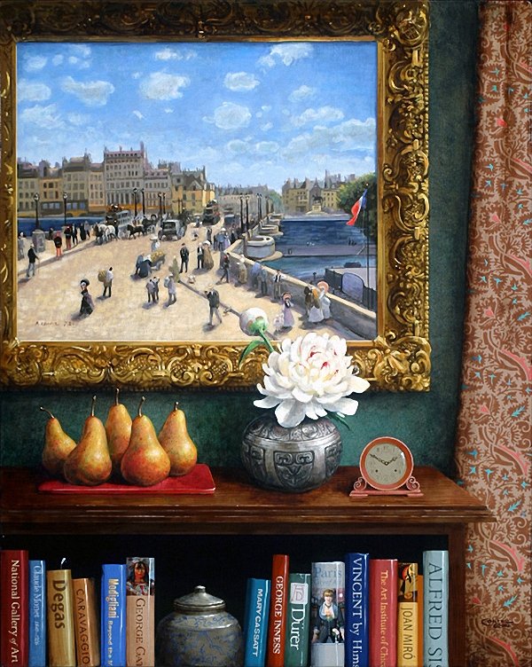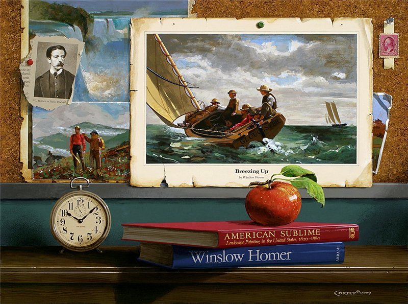 Дженнисс Кортес Jenness Cortez Вложение 124001 Американская художница. Дженнисс Кортес родилась в 1944 году во Франкфурте, штат Индиана. В возрасте шестнадцать лет она начала изучать живопись в Школе искусств Херрона в Индианаполисе, одновременно она брала частные уроки у голландского художника Антониуса Раемаекерса (Antonius Raemaekers). Позже она училась в Студенческой Лиге искусств в Нью-Йорке у Арнольда Бланше (Arnold Blanche). Начинала карьеру художница, подобно Джорджу Стаббсу и Фредерику Ремингтону, с анималистики, заявив о себе, как о талантливой рисовальщице лошадей. Начиная с 1977 года и в течение следующих двадцати лет, она получила международное признание именно за свои спортивные картины с изображением лошади. В середине 1990-х начал расти давний интерес художницы к пейзажной живописи. Ее пейзажи выполнены в традициях основных пейзажных школ 19-го века – французской барбизонской школы и американской школы «реки Гудзон». В своих последующих работах, Кортес отдает дань уважения знаменитым художникам. Вдохновленная светом, цветом и самими картинами великих мастеров, Кортес умело объединяет копии известных полотен и скульптур в изысканных интерьерах и натюрмортах, изображая картины в стиле фотореализма с любовью к деталям. Изображая известные картины в своих композициях, Кортес подчеркивает классический парадокс живописи: картины выступают и как "окно" в другое пространство, и как физический объект. Творчество Кортес ставят в один ряд с именами ее современников О'Киф и Эстеса, которые пишут в такой же манере. Работы Кортес находятся в многочисленных государственных и частных коллекциях, в том числе у бывших президентов США Рональда Рейгана и Билла Клинтона, английской королевы Елизаветы II, конгрессменов и губернаторов, а также в музеях штата Нью-Йорк и многих компаниях и корпорациях. Источник – мой перевод с официального сайта художницы. Вложение 124002 Jenness Cortez The Portrait Master. Вложение 124003 Jenness Cortez Winter on the Normany Coast. Вложение 124004 Jenness Cortez Riding the Storm. Вложение 124005 Jenness Cortez Summer Breeze. Вложение 124006 Jenness Cortez The Native Americans. Вложение 124007 Jenness Cortez Manet's Paris. Вложение 124008 Jenness Cortez Madison's Vision. Вложение 124009 Jenness Cortez The Noble Horse. Вложение 124010 Jenness Cortez Vincent's Blues. Вложение 124011 Jenness Cortez Stirring the Nation. Вложение 124012 Jenness Cortez Gratitude. Вложение 124013 Jenness Cortez Under Paris Skies. Источник: http://www.liveinternet.ru/users/2010239/post136005516 |
