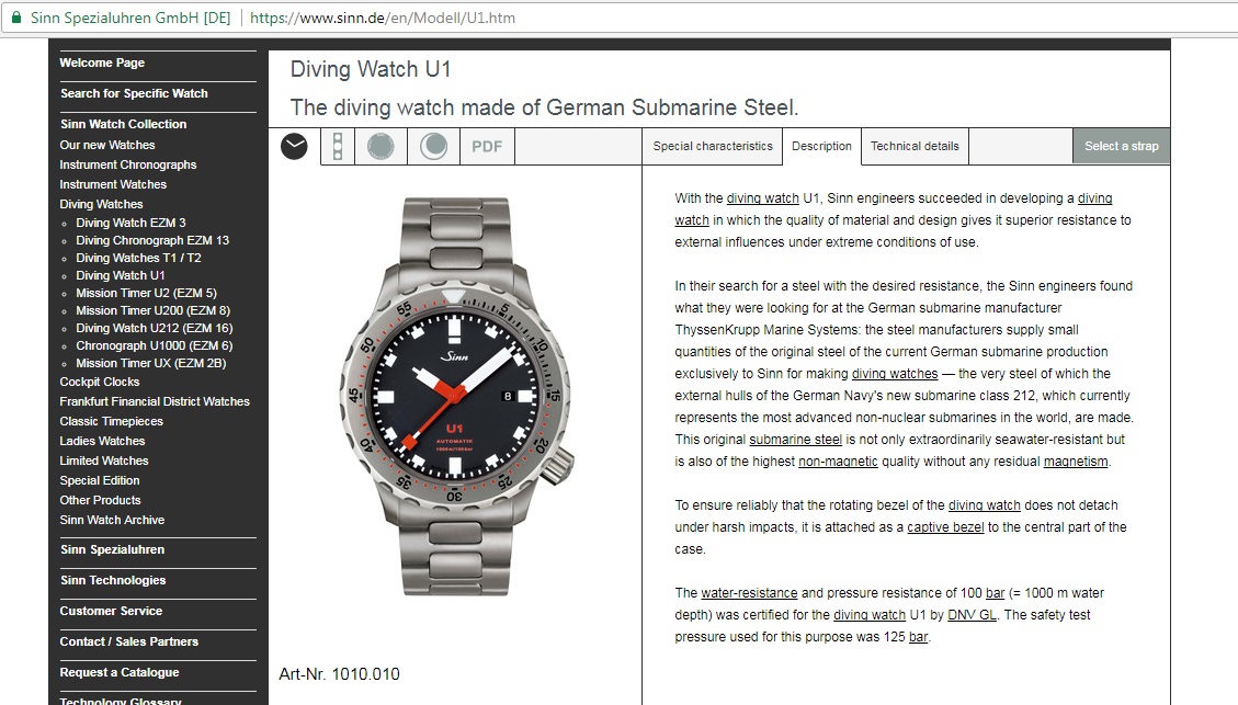 Браслет у модели Sinn U1-T (о которой идёт речь на WUS) из тагментированной (закалённой стали): http://www.watchbuys.com/store/pc/Si...elet-p1493.htm Вложение 2020355 У всех производителей использующих закалку (причём различные методы закалки), встречается случаи коррозии. |