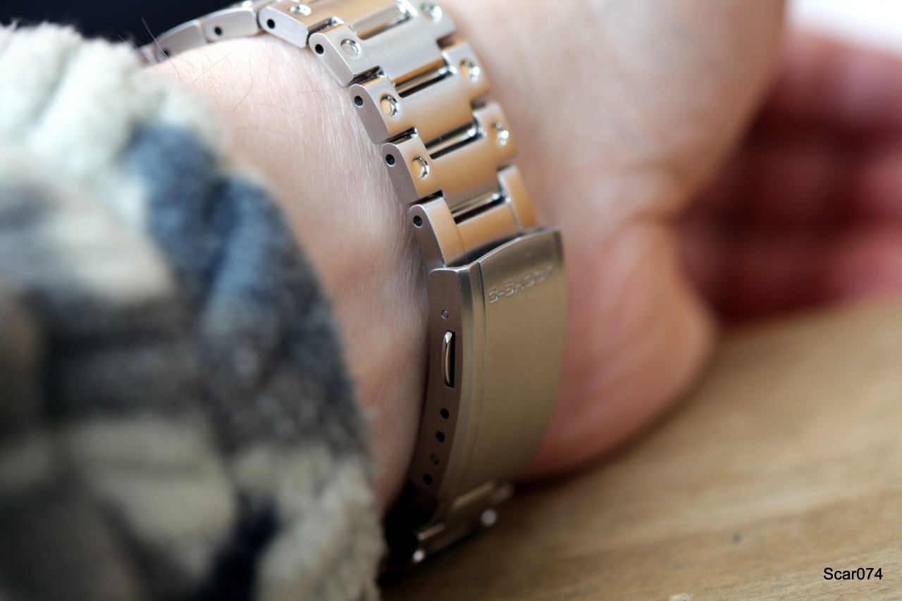 Спорное конечно решение крепления крайних звеньев браслета. Я бы даже назвал это хорошим таким конструктивным косяком, свойственным больше фэшн часам. Крепление должно быть как у мтг, а тут получается часы только на крупную руку, т.к. на худом запястье крайние линки будут сильно выступать, по факту прилично увеличивая высоту корпуса. Выглядит данное решение не красиво, в носке уверен некомфортно, и к тому же при сильном ударе или падении часов наверняка шпильку погнет или деформирует.