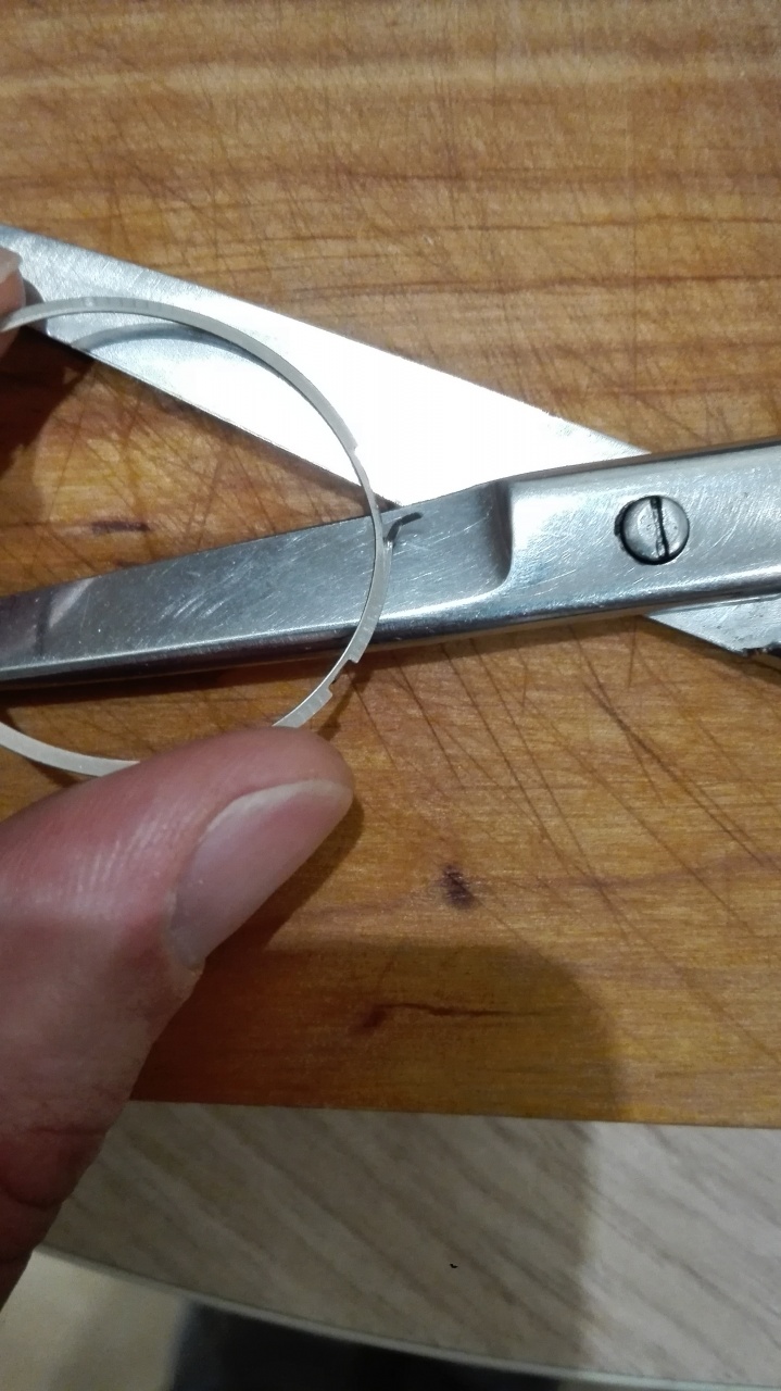 Это место на кольце тихонько зажигалкой подогреть, а сжимать ручки ножниц не руками, а, например, струбциной. По чуть-чуть.