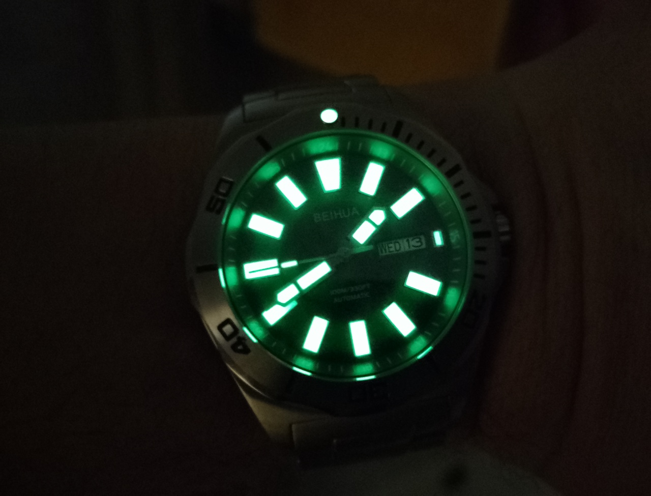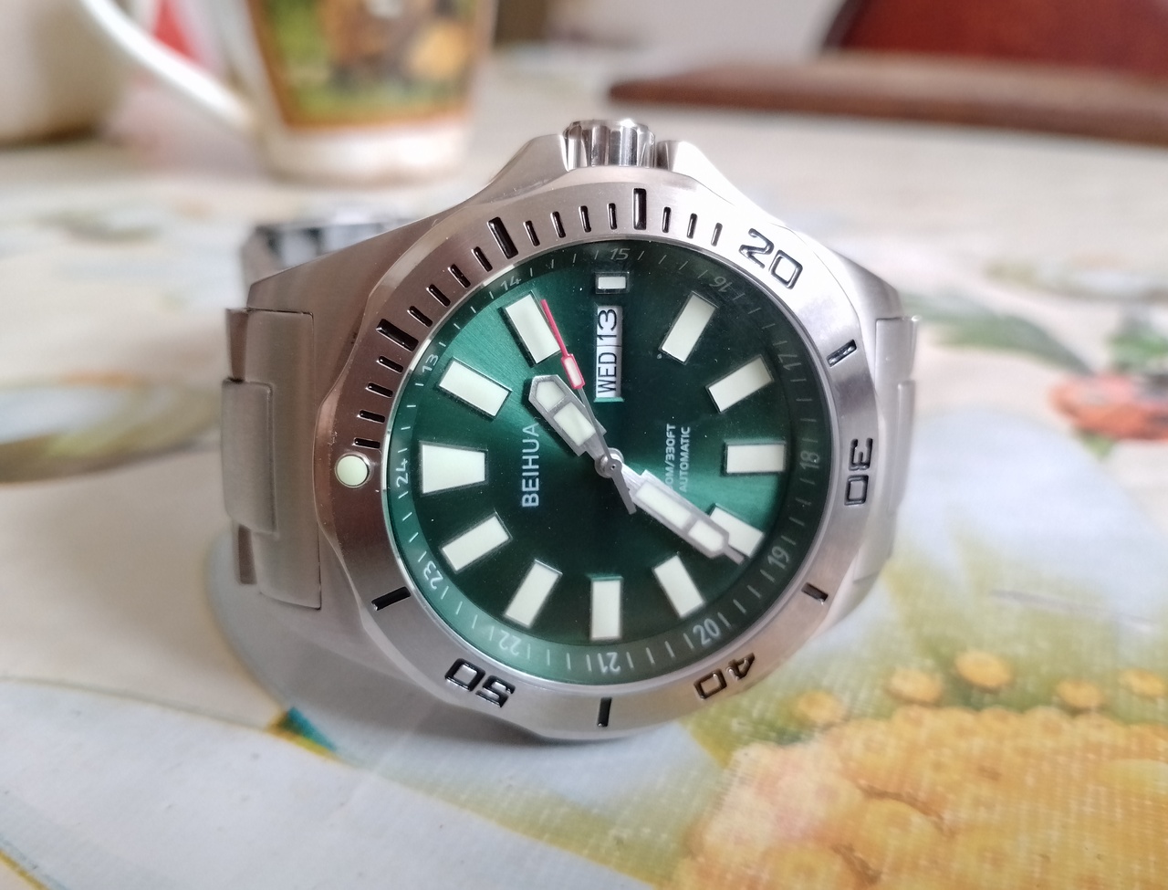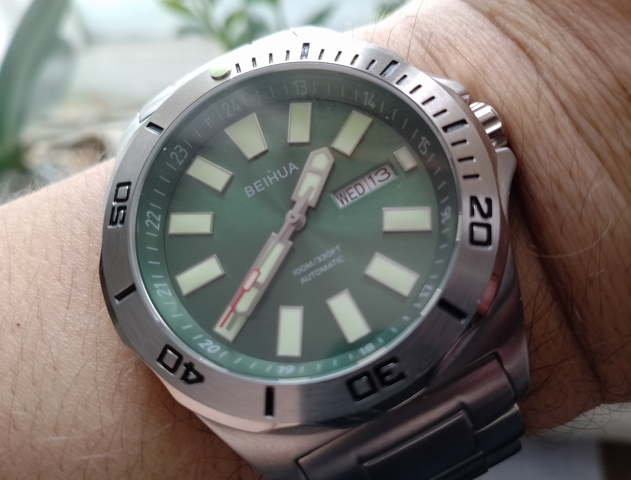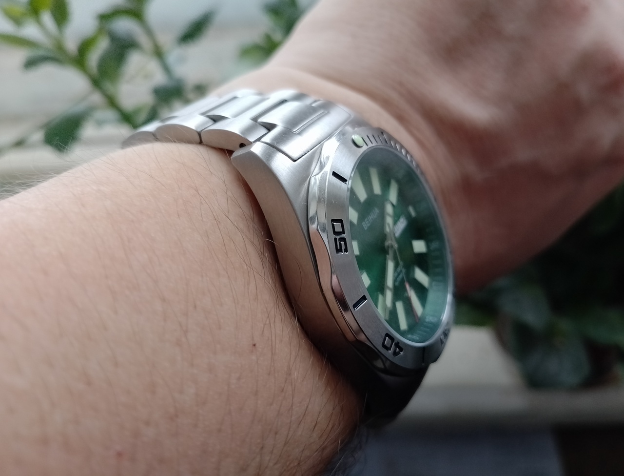 Не знаю в какой ветке хвалятся часами, решил похвалиться в ветке, посвящённой часам YELANG, чтобы не создавать новую тему, потому как мои новые часы изготовлены, на сколько я понял, именно этим брендом. Часы называются BEIHUA, нашёл я их среди YELANG-гов, были разные модели эдаких военных часов с тритием и т.д... типа милитари... и среди них были часы в корпусе YELANG, с логотипом на коронке YELANG (волк), но названием BEIHUA. Вначале, думал взять YELANG с тритием и с арабскими цифрами, но в варианте с тритием не было никакого люма, а мне хотелось большие широкие метки, а не только маленькие тритиевые колбочки, и тут я увидел вот эти часы, в корпусе YELANG, но с цифером с люмом с полной датой, часы ни на кого не похожие, не хомаж ни на что, я как раз искал такие элегантные дайверы, типа, аля дайверы, но чтобы выглядели красиво и не слишком котлообразно. Часы, как по мне, имеют свой дизайн, ни на что особо не похожий, хоть и простые, но огромного размера метки с суперлюминовой, полная дата, огромные стрелки с суперлюминовой (всё это дело светится всю ночь), заводная головка на резьбе, также, как и задняя крышка (которая, к слову сказать - ещё и прозрачная, через неё видно механизм SEIKO NH36A). Отделка часов просто превосходная, я не нашёл к чему придраться, все очень мягко сатинировано, полированная полоска лишь по торцу безеля - всё остальное - сатинирование. Лишь края корпуса с внутренней стороны немного островаты, но дискомфорта руке не создают. На руку садятся как влитые. Не смотря, что часы имеют диаметр 43 по безелю и 34 по циферблату (считай, обычный , средний размер) смотрятся, как огромные котлы... вероятно, за счёт того, что сам циферблат очень большой по соотношению к корпусу. Цифреблат имеет цвет малахит с эффектом "солнечные лучи". Безель одностороннего вращения с небольшим люфтом, работает и ладно. Общее исполнение часов превосходное!!! А, да, забыл! - стекло, конечно, сапфир!! Не думал, что за 9932 руб. можно получить такую красоту. Браслет комплектный большой длины на большую руку, снял сразу три звена и чуть подстроил пряжку под своё запястье, часы сели отлично. Да, пряжка - обычная штамповочка и бакля и сама клипса - и это хорошо!!!!! У моих, например, сейко Монстров (Хомаж от ХеимДаллр) литая клипса режет руку. Штамповка тонкая, лёгкая и приятная для руки, как по мне. На эти часы я давно положил глаз, у наших братьев китайцев они стояли около 19 000 руб... я терпеливо ждал скидки и акции и дождавшись акции и дополнительно использовав купоны и баллы, цена вышла в 9932 руб. Как по мне - так супер.. Итак, фото.... Вложение 3648772 Вложение 3648773 Вложение 3648774 Вложение 3648775 Вложение 3648776 Вложение 3648777 Вложение 3648778 Вложение 3648779 Вложение 3648780 Вложение 3648781 Вложение 3648782 Вложение 3648783 Вложение 3648784 Вложение 3648785 Вложение 3648786 Вложение 3648787 Вложение 3648788 Вложение 3648789 Вложение 3648790 Вложение 3648791 Вложение 3648792 Вложение 3648793 Вложение 3648794 Долго искал элегантные дайверы (или почти дайверы 10 АТМ) с абсолютной читаемостью в темноте и с уникальным дизайном - не хомажем, и, похоже, нашёл. |