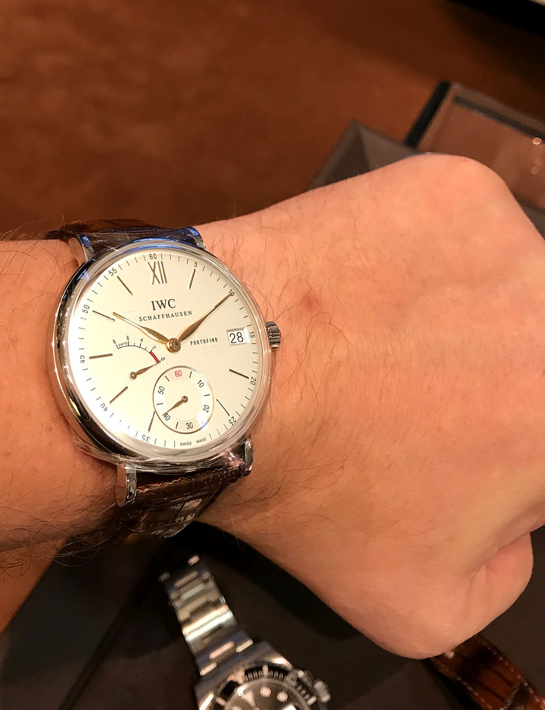 1. 39 размер, казалось бы маленький, но для тонкого безеля костюмника больше не нужно. Семидневник больше. В результате получаем тонкие и очеь удобные и легкие часы, которым не задеваешь за ручки и косяки. 2. Портофино подкупает своей лаконичностью. Посмотрите его в живую. Ничего лишнего и все есть. Не броско, но очень элегантно. 3. Приятная цена, многодневники стоят совсем других денег, при этом менее точны. Мой экзкмпляр идет менее секунды в сутки в минус |