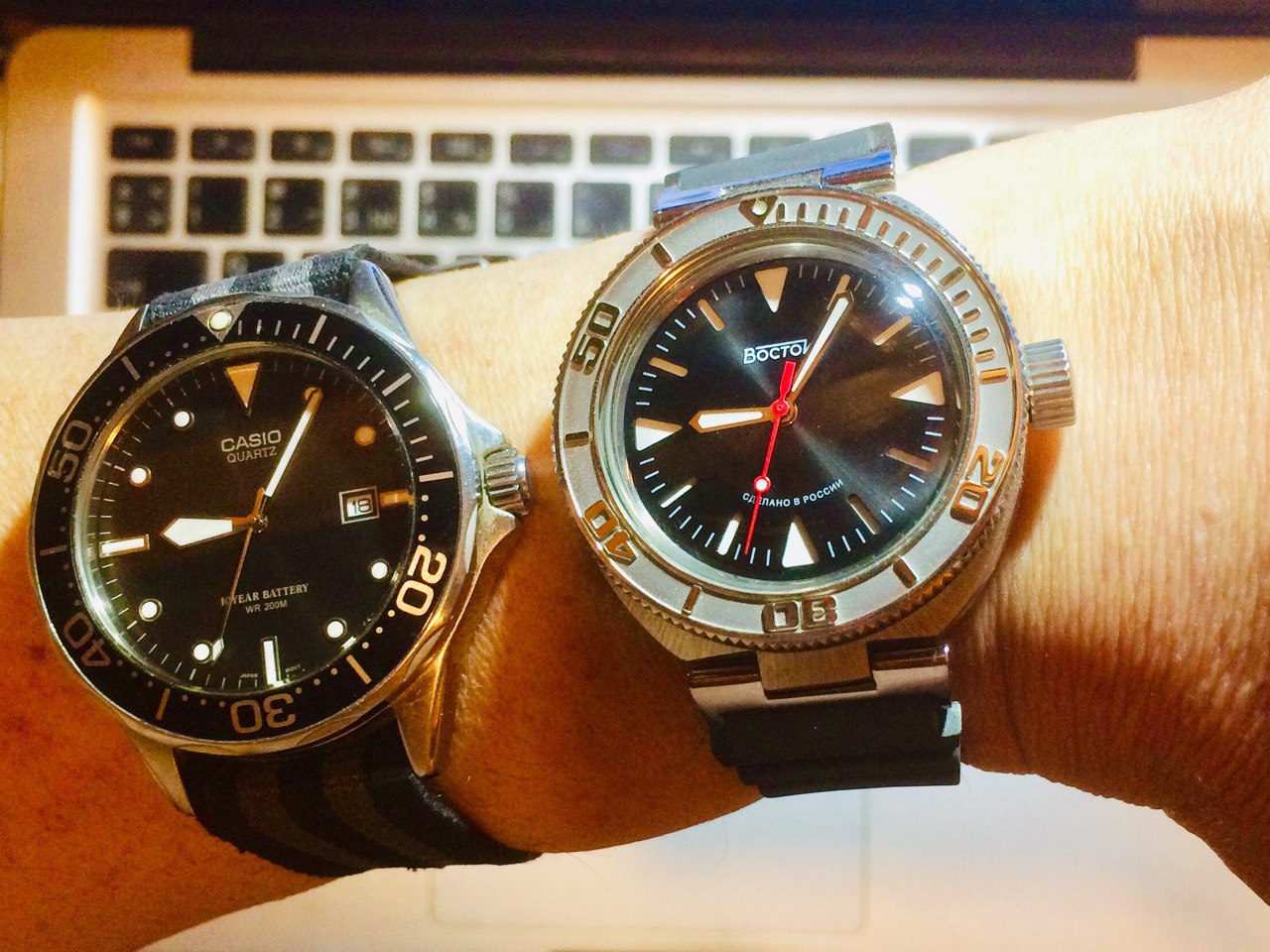 джишоки, протреки слишком спорт, милитари, шайбы на моей 17 см руке, а эдики просто не нравятся. поэтому неовинтажники калькуляторные (коль таковыми их можно обозвать), подсветка такого типа больше заходит. имхо.