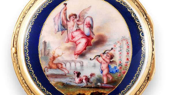 Миниатюрная живопись на эмали пережила два периода почти полного забвения, и даже сегодня к этому искусству нередко прибавляют эпитеты "раритетное" и даже "утерянное". Хотя, на самом деле, живопись на эмали никогда не умирала, потому что она – вечна. Рождение Сама по себе эмаль — разновидность стеклянного материала из кристаллов кремния, буры (тетраборнокислотного натрия) и магния — как художественное средство известна довольно давно. Эту смесь можно окрашивать в различные оттенки путем добавления окислов металлов (кобальта, меди или серебра), а при интенсивном нагревании она плавится подобно стеклу. Нанесение порошка эмали на металл с последующим обжигом (т.н. горячая эмаль) использовалось в прикладном искусстве Древнего Египта, Индии и Китая. Художниками древнего мира были освоены техники выемчатой и перегородчатой эмали, известные нам и сегодня: в первом случае в металле отпечатывается рисунок, который потом заливается разноцветной эмалью, а во втором — контур рисунка создается на поверхности металла с помощью тончайших перегородок из нитей золота. Вложение 62142 Наибольшего совершенства техника выемчатой и перегородчатой эмалей достигла в произведениях прикладного искусства Византии (X-XV вв.), где в основном эмалевый рисунок использовался для украшения кубков, ваз и прочей интерьерной утвари. Именно в таком качестве эмаль (известная у нас под названием "финифть") приходит и в Россию. Как прямые наследники греческой культуры, мы вначале (XIV-XV вв.) использовали эмаль как фон на литых и чеканных изделиях, а к XVI веку освоили и рисунок перегородчатой (сканной) эмали, которым покрывали всю ту же церковную утварь. Пока восточные традиции декоративного искусства отводили эмали роль чисто оформительского материала (скорее схожего с чеканкой или инкрустацией — ведь не случайно эмалевые вставки ценились русскими царями не меньше, чем драгоценные камни), на Западе эмаль превратилась в полноценную художественную отрасль. И произошло это благодаря появлению первых карманных часов. Миниатюрная живопись на эмали в современном виде появилась в центральной Франции в начале XVII века и использовалась в основном для украшения крышек и циферблатов часов. В впоследствии центр эмальерного искусства переместился в Женеву. Вложение 62143 Жизнь первая История карманных часов берет свое начало приблизительно в 1510 году. На самом деле, их в то время никто не носил в кармане, как это стали делать почти два века спустя, а они висели на цепочке, которую одевали на шею. Поэтому более правильным в данном случае будет английский термин pendant watches, что буквально переводится как "часы-подвески". Вначале часы имели шарообразную форму и только к 1630 году приобрели вид, знакомый нам и сегодня: круглый корпус с крышкой, предохраняющей циферблат. Естественно, при достаточно сомнительной точности механизмов и штучном производстве, часы на шее воспринимались в первую очередь как украшение и даже признак статуса — поэтому над их оформлением трудились не меньше, чем над наградными знаками. Эмалевая миниатюра – как наиболее эффектный способ создания сложных и, главное, ярких изображений на небольшом пространстве металла, стала основным средством украшения карманных часов. Именно миниатюрная живопись по эмали считается наиболее благородной, художественно вырази