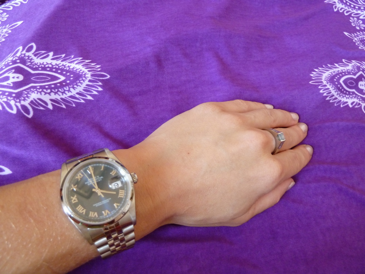 чуть крупноваты часы на вашем запястье смотрятся по-моему ... 34мм Date, а ещё лучше 31мм Datejust - были бы в самый раз ... ну и - поздравляю! |