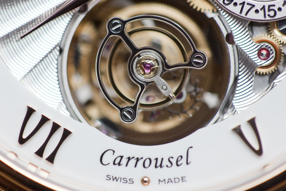 http://s019.radikal.ru/i639/1401/5e/a2c60702699f.jpg http://i023.radikal.ru/1401/8e/c07df5e92a0f.jpg http://s52.radikal.ru/i137/1401/b2/aacc724a26b2.jpg http://s020.radikal.ru/i719/1401/fd/ac97905dffb7.jpg http://i023.radikal.ru/1401/f7/c502155e746e.jpg [media]http://www.youtube.com/watch?v=BSu-68QHbjU[/media] Известно, что турбийон и карусель являются двумя основными устройствами, предназначенными для компенсации влияния гравитации на работу механизма часов. В этом году Blancpain представляет часы, в которых одновременно используются оба эти усложнения Отличаются друг от друга они тем, что каретка турбийона с заключенным в ней спуском является одной из составных частей колесной передачи часового механизма, а каретка карусели (которая выглядит абсолютно так же, как турбийон) подключается к колесной передаче отдельной колесной "тропой". Считается, что таким образом карусель избавляет колесную передачу часового механизма от дополнительной, а порой и чрезмерной нагрузки. Каретка парящего турбийона расположена в позиции "12 часов", а парящая карусель расположена в апертуре на позиции "6 часов". Турбийон и карусель соединены системой дифференциальных передач, которая передает среднюю скорость обоих регуляторов для усредненного отображения времени. Хитрая система позволяет заводить оба барабана одновременно и равномерно. Так обеспечивается высокая точность. Комбинация турбийона и карусели является первой в истории часового искусства. В положении "3 часа" находится аналоговый указатель даты с вороненой стрелкой, часы и минуты указывают изящные листовидные стрелки. Сердцевина циферблата выполнена из посеребренного золота и украшена гильоше в виде радиальных полосок. По внешнему диаметру циферблата, выполненного в технике горячей эмали Grand Feu, идут накладные часовые индексы из золота. Модель оснащена калибром Blancpain 2322 с ручным заводом, на 70 камнях, с балансовой частотой 28800 полуколебаний в час (4 гц), с двумя кремниевыми балансовыми пружинами и с внушительным запасом хода до 168 часов. Размеры корпуса из розового золота 44.6 х 11.94 мм Retail (Europe): € 233 200 ($ 319 000) Источник: http://www.ablogtowatch.com/baselwor...lon-carrousel/ и http://www.watch-insider.com/news/ba...ain-novelties/ Вложение 602613Вложение 602623Вложение 602625Вложение 602626Вложение 602627Вложение 602628Вложение 602629Вложение 602630Вложение 602631Вложение 602632Вложение 602633Вложение 602634Вложение 602637Вложение 602674Вложение 602675Вложение 602676Вложение 602677Вложение 602678 |