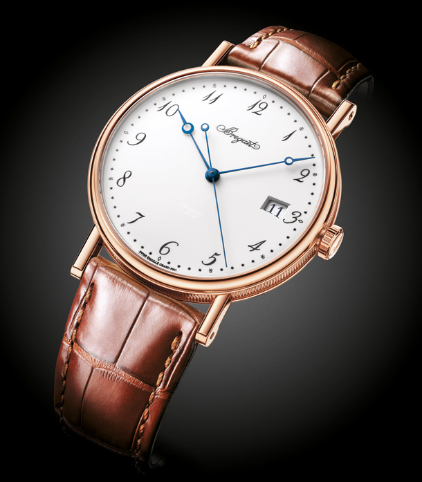 Часы 5177 входят в ряд тех моделей, которые полностью посвящены классическим традициям, тайну которых знает только Breguet. Ранее эти часы предлагались только из 18-каратного желтого и белого золота, а теперь они представлены в новой версии из розового золота. В новом драгоценном облачении в теплых тонах эти часы, разумеется, сохраняют все изысканные элементы, свойственные моделям коллекции Breguet Classique: рифленая поверхность корпуса и прозрачная задняя крышка, водонепроницаемость до 30 метров; приваренные ушки для крепления ремешка; посеребренный циферблат из чистого золота с нанесенным вручную гильоширным "корзиночным" узором или с эмалевым покрытием в стиле grand feu; и вороненые стальные стрелки Breguet, украшенные характерным эксцентричным концом в форме Луны. С технической точки зрения эти часы по-прежнему сохраняют такие простые полезные функции, как центральная секундная стрелка и дата, приводимые в движение механическим калибром 777 с автоподзаводом с кремниевым рычагом и спусковым колесом. Эта модель не может не напоминать нам о том, до какой степени часы Breguet являются примером идеального союза традиционной красоты и передовых технологий.
