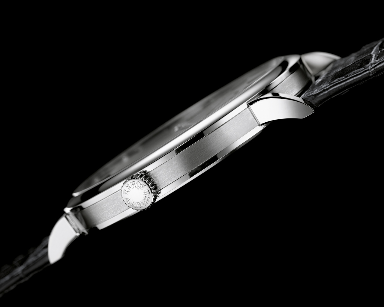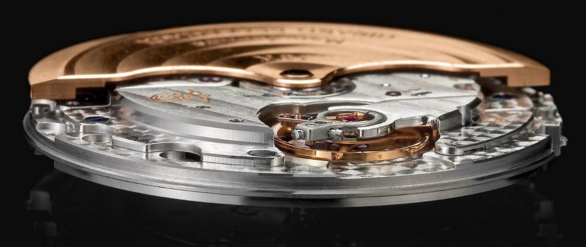 Новинка имеет круглый полированный корпус, изготовленный из 18-каратного розового золота, диаметром 39,50 мм, толщиной всего 7,13 мм, водонепроницаемый до 30 метров. На торце рифленой заводной головки, расположенной на 3 часах, выгравирован логотип L.U.C. Сапфировое стекло установлено на передней стороне корпуса (с антибликовым покрытием) и на его задней крышке. Циферблат серебристого цвета с лучистой отделкой, с золотыми накладными часовыми индексами и стрелками. Модель оснащена мануфактурным швейцарским автоматическим механизмом L.U.C 96.12-L (L.U.C 1.96), диаметром 27,40 мм, толщиной 3,30 мм, на 29 камнях, с балансовой частотой 28800 полуколебаний в час (4 гц), двумя заводными барабанами (технология Twin®), микроротором автоподзавода, запасом хода 65 часов, функциями индикации часов, минут (посредством соответствующих центральных стрелок) и секунд (на малом боковом циферблате, расположенном на 6 часах). Поставляется на коричневом ремешке из кожи аллигатора с застежкой из 18-каратного розового золота. Вложение 497374 Источник: http://professionalwatches.com/2013/...onalWatches%29 |