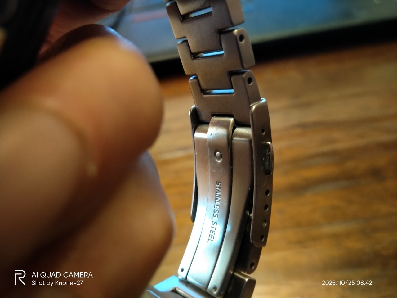 Вложение 3902171 Вложение 3902172 Вариантов решения как минимум созрело два - изготовить новый грибок или немного подогнуть концевую часть звена. Выбрал (колхозный) вариант номер два. Получилось так: Вложение 3902161 Вложение 3902162 Вложение 3902163 Ступенька между застёжкой и звеньями браслета стала меньше и, соответственно, бренчать стало меньше. P.S. Подгибал просто пальцами, удерживая пластину-звено за тонкую часть круглогубцами и отметил, что механические свойства японской нержавейки несколько выше, чем та, с которой приходилось сталкиваться, типа 12Х18Н10Т. |