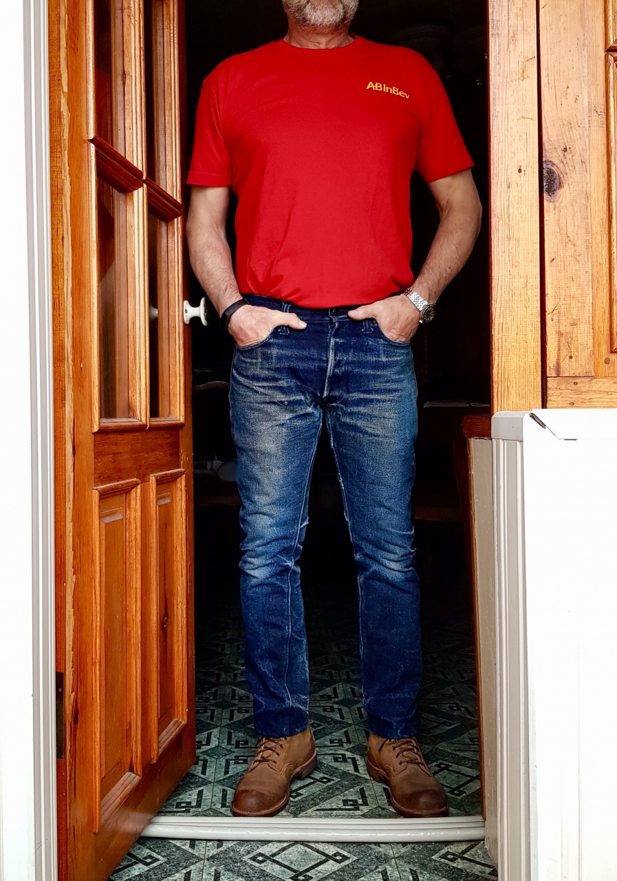 Эта пара в NW, но штаны пришли не 96 см в поясе, как по запросу отвечали перед отправкой и как было на сайте, а 98 см. При замачивании деним ведет себя оооочень странно. В поясе, без всяких распорок садится до 96 и через пару часов носки растягивается, приблизительно до тех же 96 см. Hem усел на см, райзы усели на, приблизительно 1,5 см-2 см. Колено на 1 см. Странность в том, и это радует, что инсим ушел всего не 1 см. Это все при том, с целью убавить пояс я таки оооочень немилосердно ошпарил топ блок такой горячей водой, какая шла из крана. Вымочил с час! Бесполезно. Все как было, так и осталось. Надеть не успел. Штаны досыхают, а я далеко от дома. Очень своеобразный деним. Low tension во всей красе! Это будут такие вот WW II портки! В карманы, и передние, и задние, можно по ядерной боНбе засунуть!:) Эдакие трубы-пароходы!:) Я целенаправленно разбавлял парк узких-прямых штанов. Эти стали третьими трубами. И да, деним, на дневном свете "играет", хоть и шлялся в штанах под дождем! ------- ДОБАВЛЕНО ЧЕРЕЗ 15 МИН -------- Цитата: