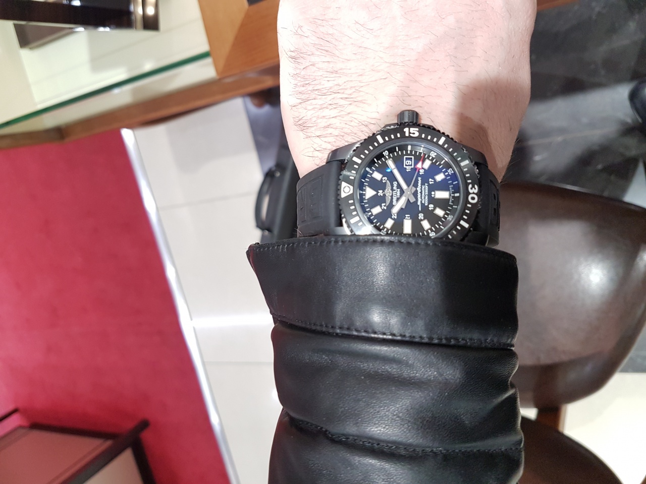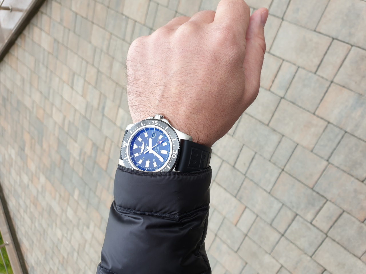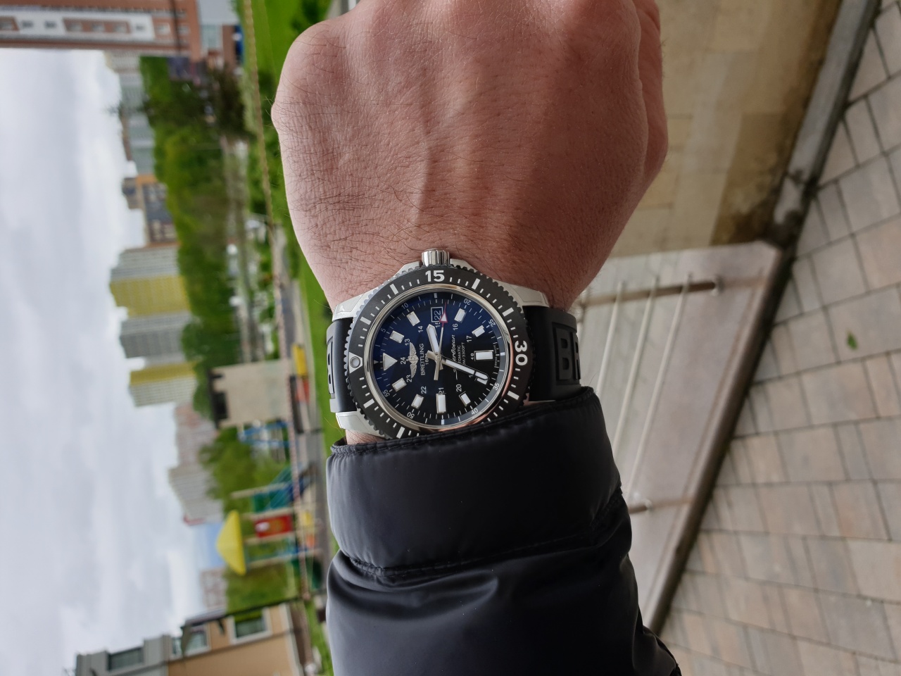 Вложение 2963390 Вложение 2963391 Вложение 2963392 Всем привет. На днях стал счастливым обладателем новеньких Breitling Superocean Special 44. Покупал здесь на маркете, так что принимайте в ряды) На мой вкус в этой модели сочетаются все лучшие качества марки: накладное лого с крыльями из белого золота, накладные полированные метки (красиво переливаются на свету), керамический безель из матовой керамики! Клипса нового образца в сатине выше всех похвал. Собственно ради клипсы брал именно на каучуке и на браслет ставить не собираюсь. Да и на браслете есть Avenger 2 gmt. Одни положительные эмоции от носки от этих ярких, видных часов. |