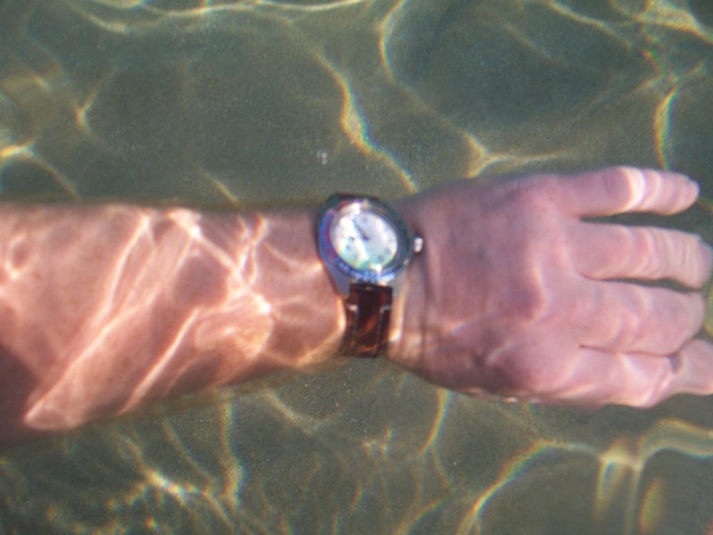 http://forum.watch.ru/showthread.php?t=134953 Вкратце - на безеле из стали 316 L появилась небольшая царапина от удара когтя огромной черепахи Плюс браслет получил потертости от соприкосновения с камнями Так что если Вам этотне все равно, то стоит попристальнее посмотреть на инновации фирмы SINN по закалке безеля и корпуса часов http://www.sinn.de/en/Modell/UX_GSG_9.htm А также использовать часы с высоко прочными покрытиями - нитрид Титана, DLC, дюракоат, диашилд и тп С учетом всяких таких возможных происшествий НЕ рекомендую: 1. Использовать дорогие часы для плавания в море, так как вероятность обо что- нибудь ими задеть стремиться к единице, а твердость часов даже с высокопрочными покрытиями невелика, а без них там твердость по сути отсутствует. Также можно поцарапать и стекло, тоже был в прошлом такой случай 2. использовать для плавания в море часы с менее чем 20 атм водозащитой, лучше использовать часы с водозащитой по ИСО 6425, в них гарантировано отсутствие значимого запотевания и хорошая читаемость цифера в ЛЮБЫХ условиях После водных процедур в море промывать часы пресной водой, без необходимости не пользоваться безелем ( под него попадают микрочастицы песка, на некоторых моделях по этой причине даже сделан съемный безель для самостоятельной очистки - см Eco-Zilla в титане ) Для протирки стекла от отложения солей после мытья пресной водой ( вечером) использовать микрофибру для очков ( в любом оптическом салоне есть, стоит копейки) |